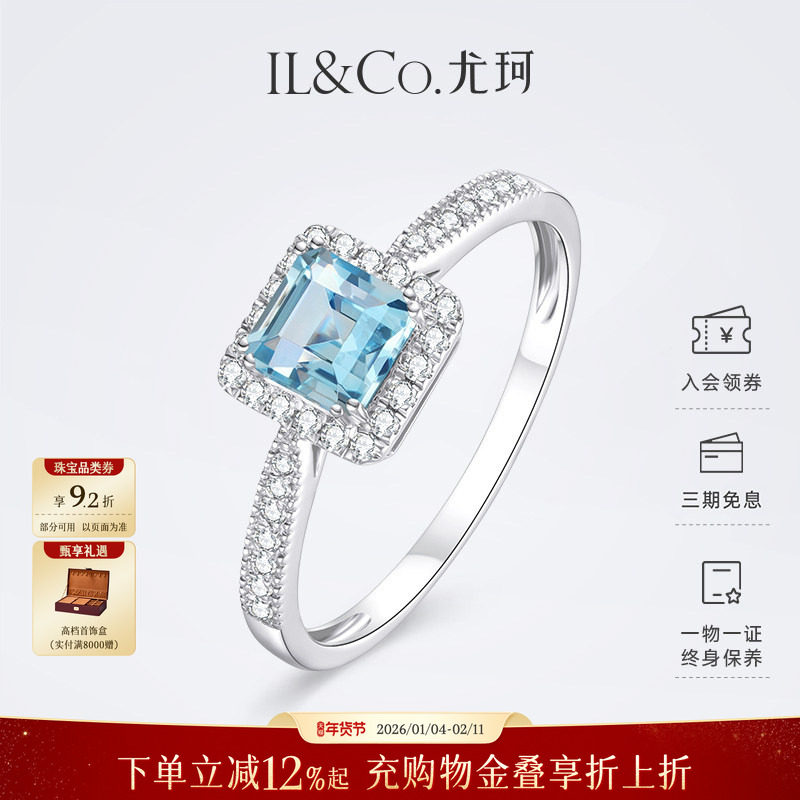 ILCO尤珂「海盐方糖」18K金天然海蓝宝戒指彩宝镶嵌钻戒宝石女戒