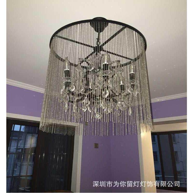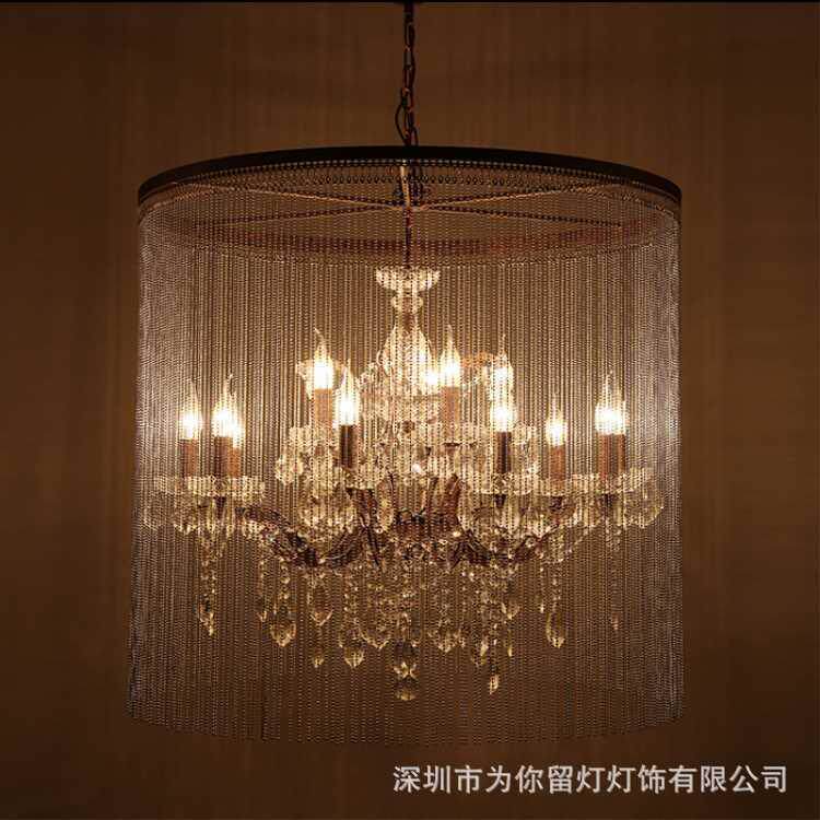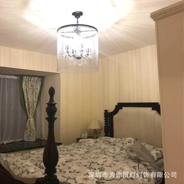 美式水晶珠帘吊灯 轻奢大气卧室餐厅灯酒店别墅吧台灯具