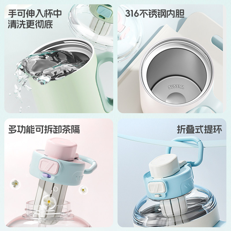 保温杯316不锈钢双饮咖啡杯大容量女高颜值随行吸管水杯情侣杯子