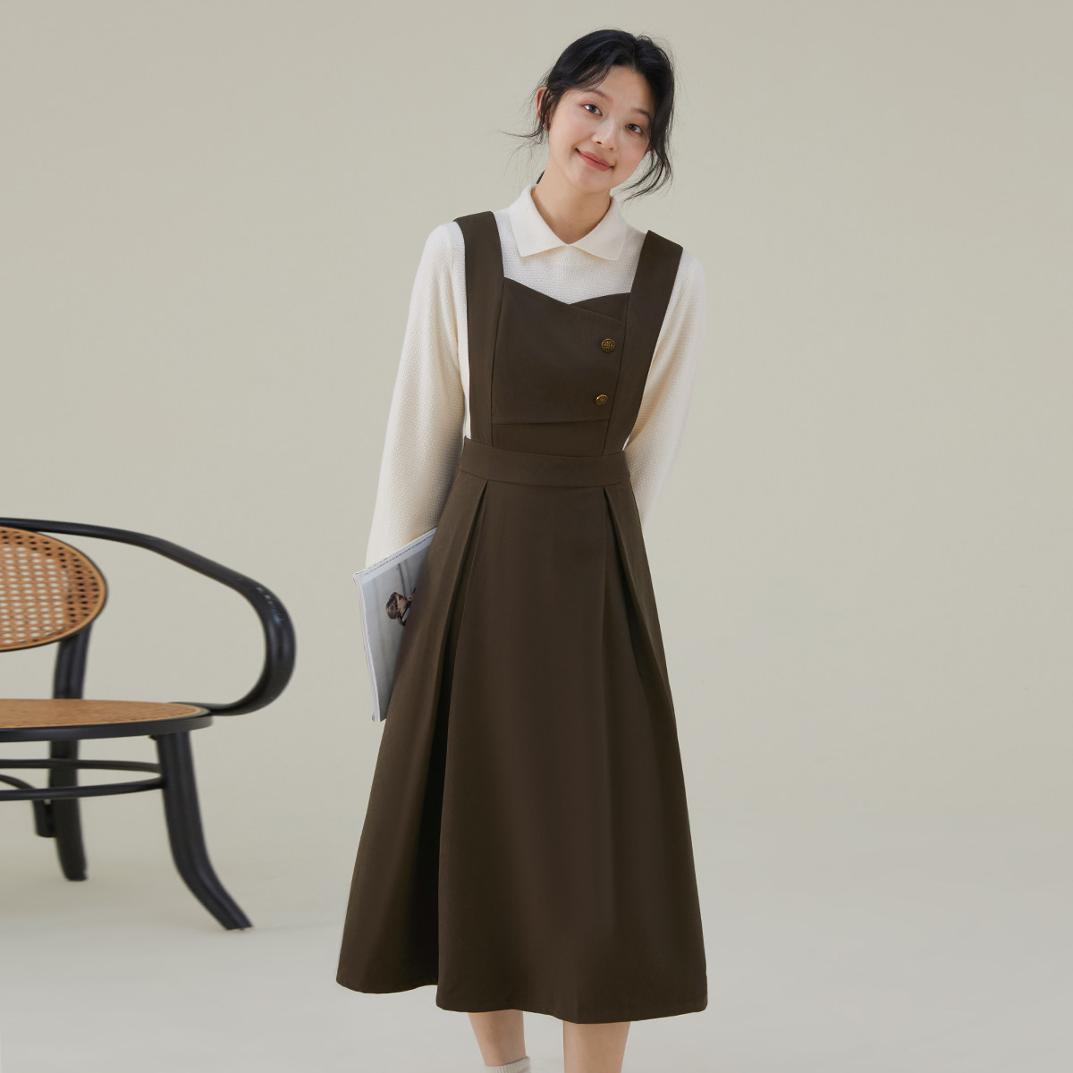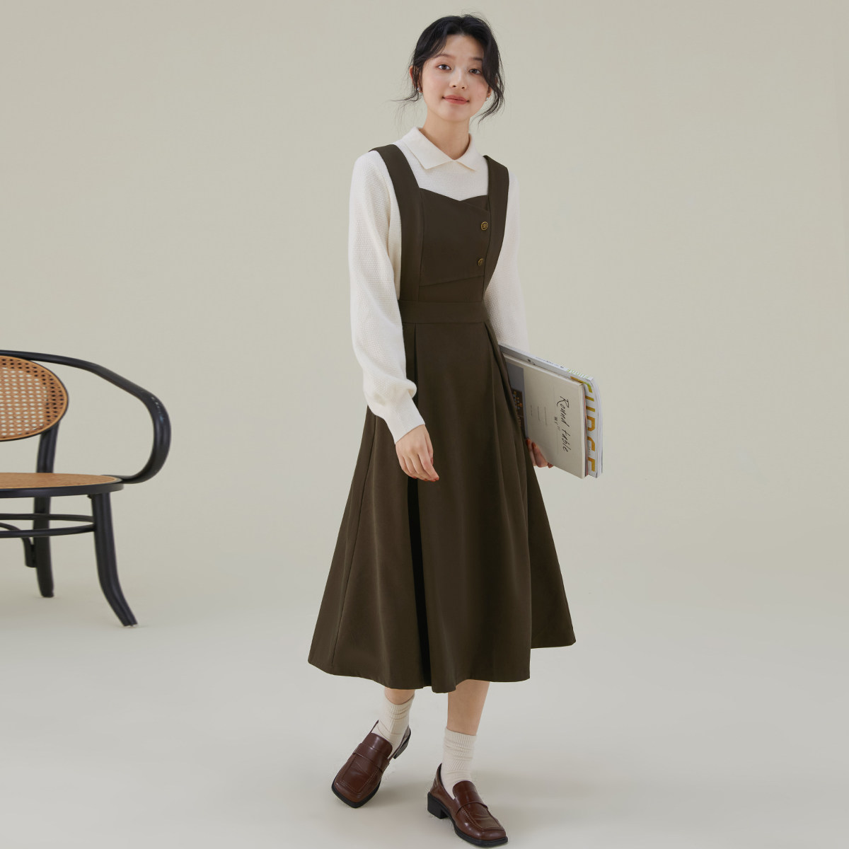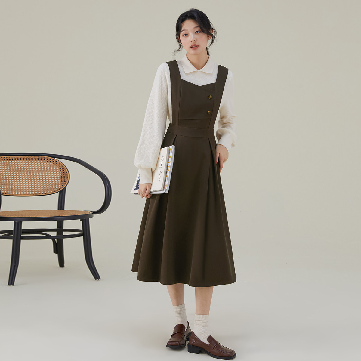 one more2025秋季时尚毛呢背带裙美德拉连衣裙女小个子吊带裙裙子