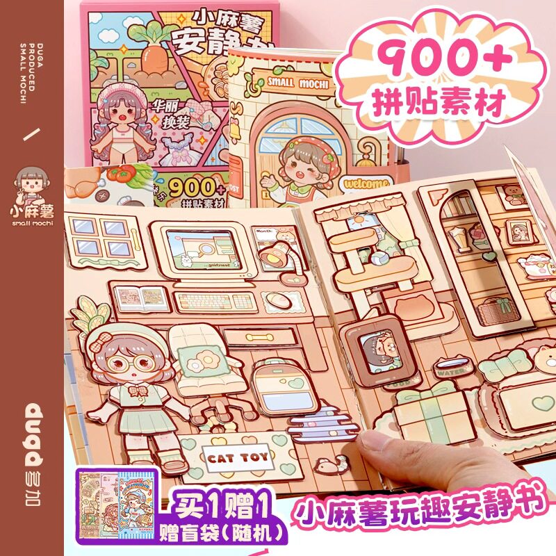 小麻薯女孩安静书新款冒险游戏免裁剪手账立体书diy装饰图案儿童解压益智玩具素材贴解闷手工磁力贴安静书