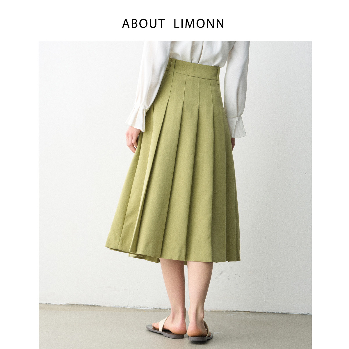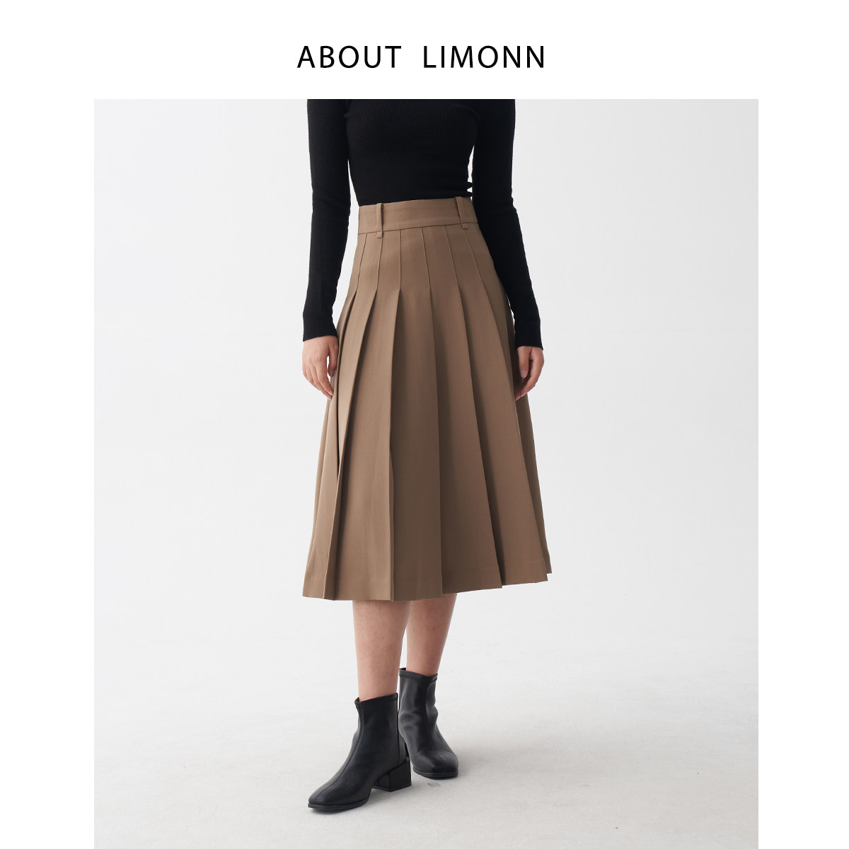 LIMONN |秋冬多颜色经典高腰显腿长A字百褶半身裙长裙