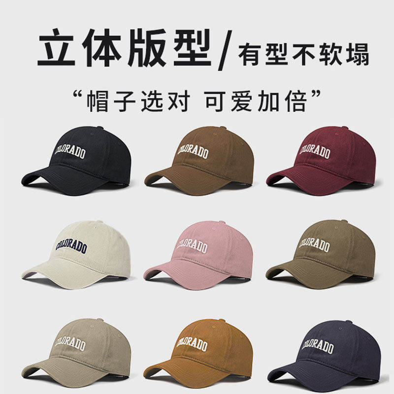 美式复古字母灰色棒球帽女高级感宽檐大头围显脸小百搭鸭舌帽子男