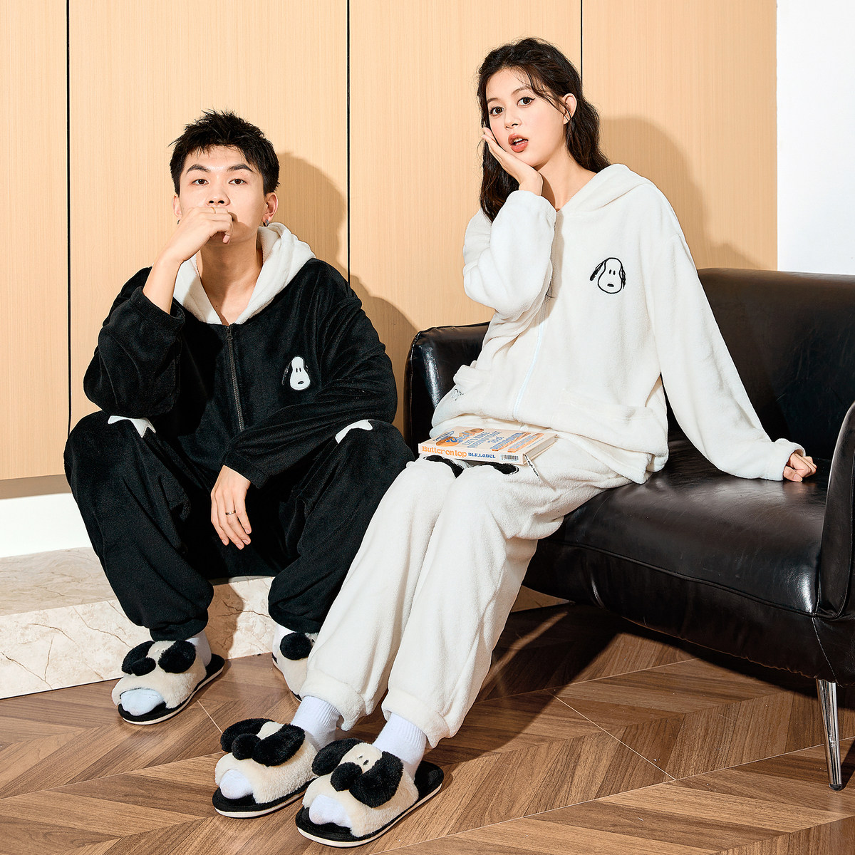 珊瑚绒睡衣女唐狮秋冬季新款史努比情侣装可外穿家居服套装男TD