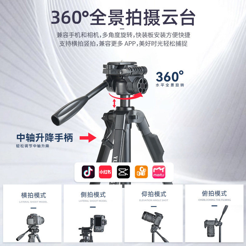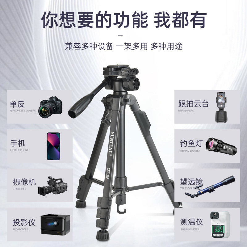 新款云腾668三脚架微单相机手机横竖拍摄视频直播自拍专业支架三维阻尼云台户外小巧便携摄影摄像富士三角架