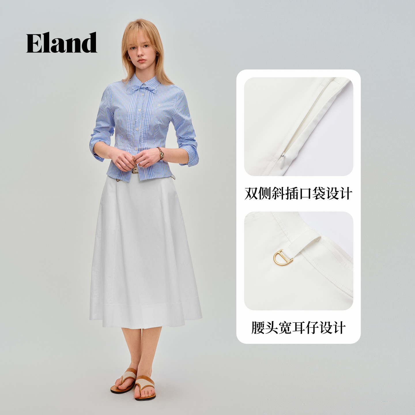 【SUPIMA】Eland衣恋半身裙女通勤长裙收腰显瘦A字裙2026春季新款