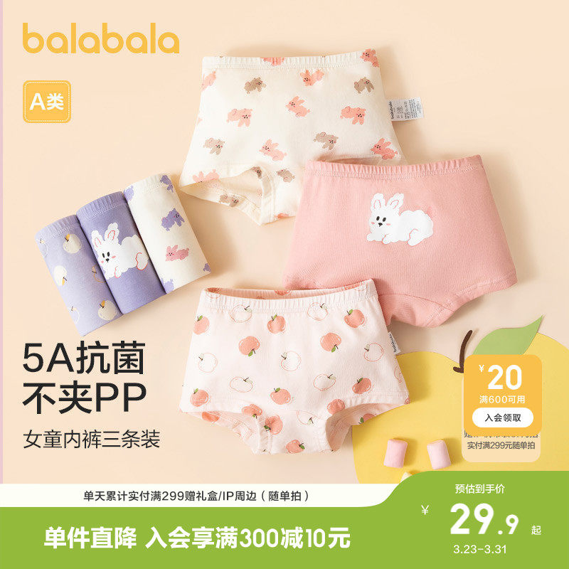 巴拉巴拉女童内裤棉平角儿童三角短裤小大童宝宝不夹PP四角三条装