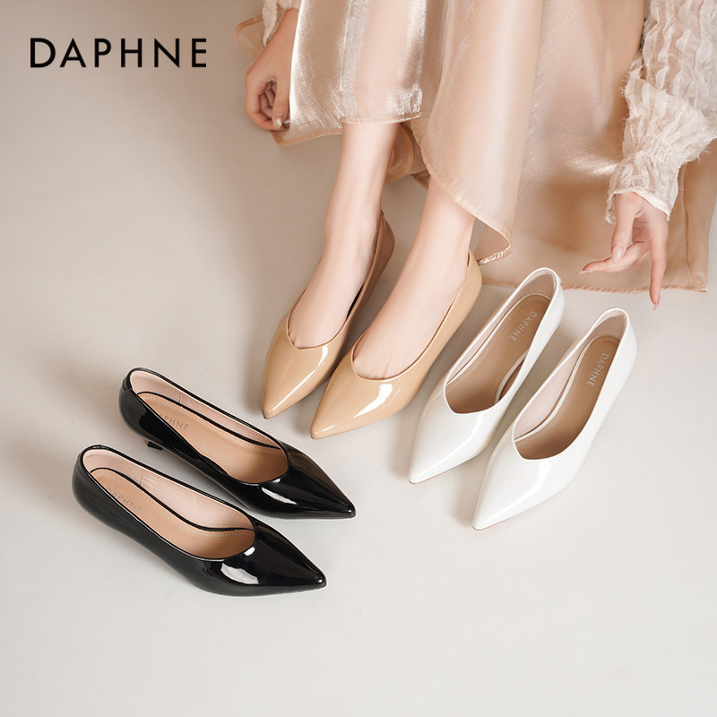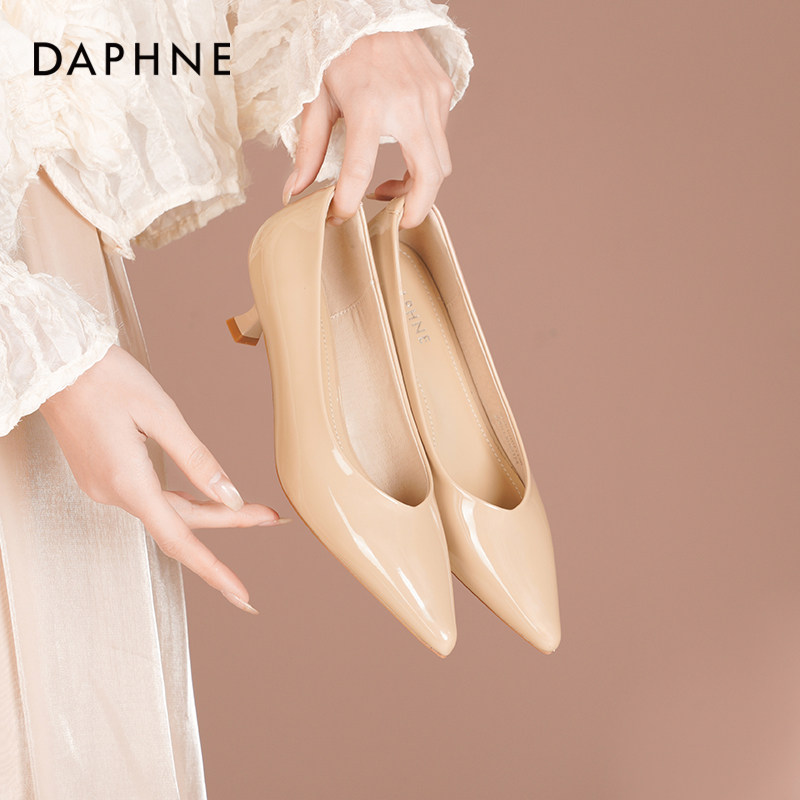 达芙妮裸色高跟鞋女细跟2026新款春法式漆皮女鞋尖头气质通勤单鞋