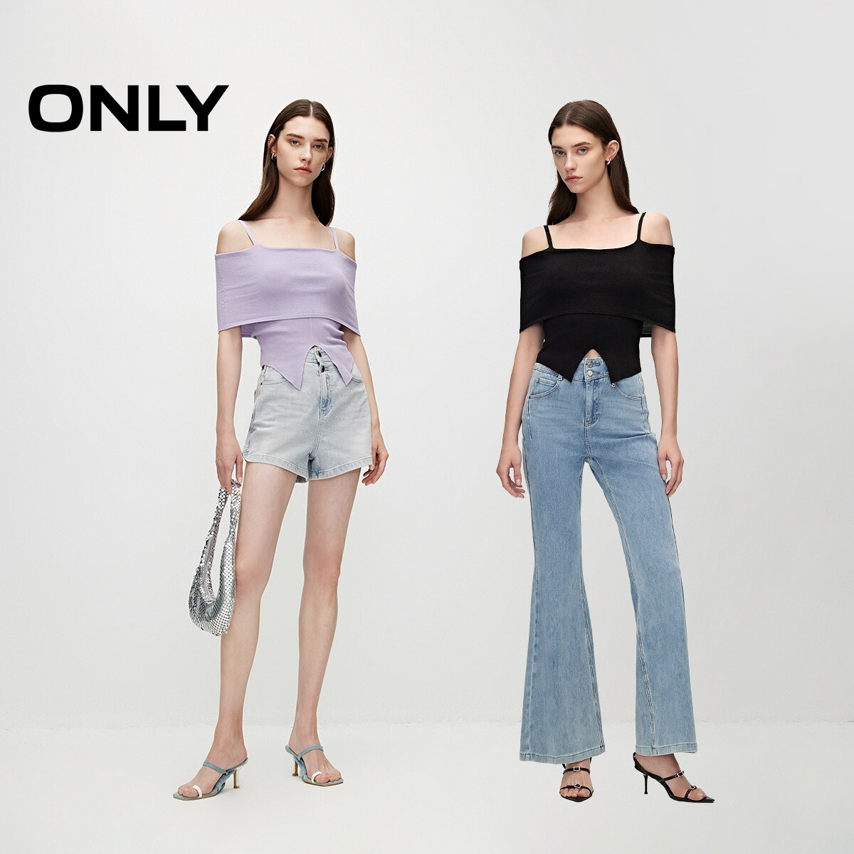 【ONLY奥莱】春季新款时尚设计感开叉一字领薄款针织衫女