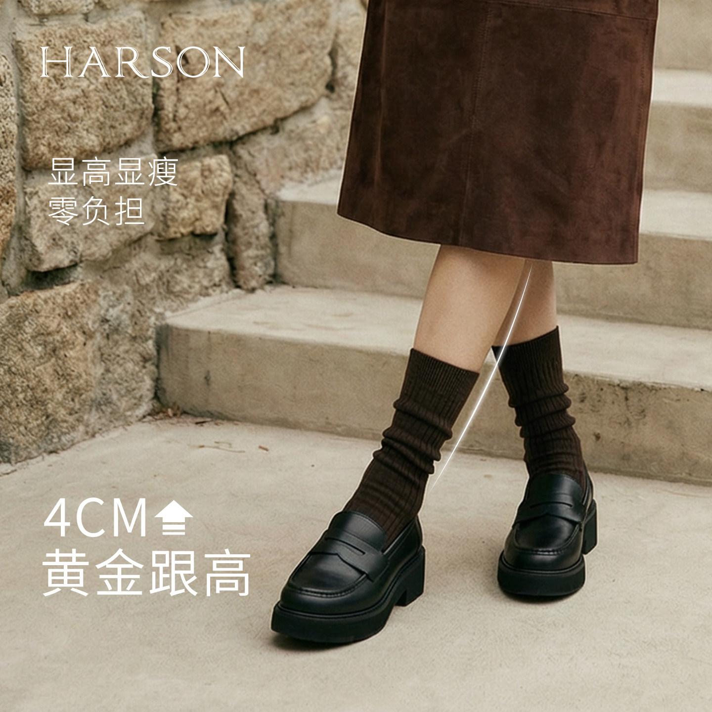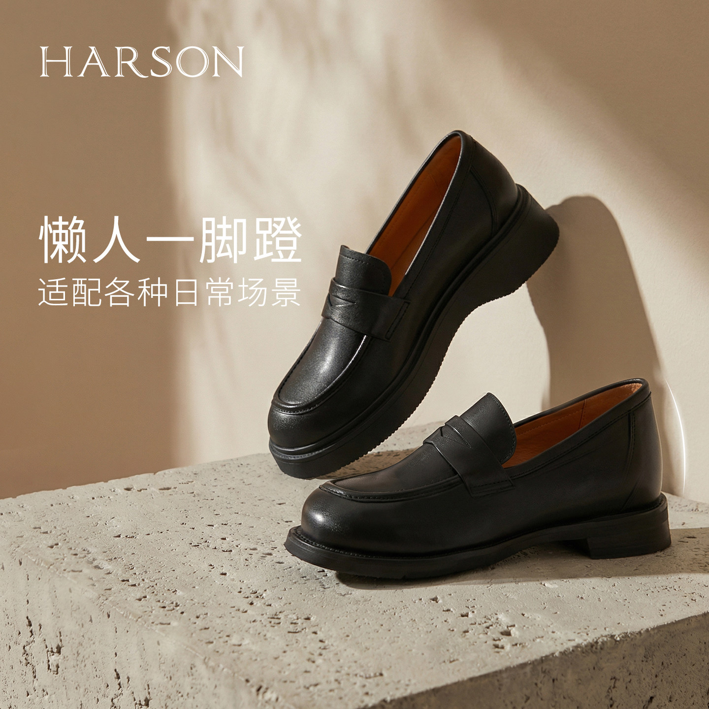 哈森英伦风真皮乐福鞋黑色一脚蹬软底舒适单鞋2026新款HWS260170