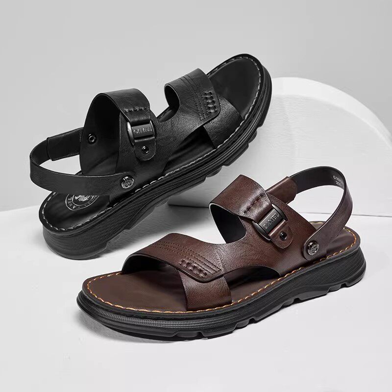 凉鞋男款2025新款真皮厚底沙滩鞋夏季外穿防滑耐磨两用凉拖鞋开车