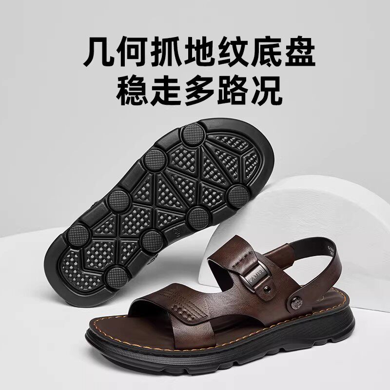 骆驼男鞋2026夏季新款真皮透气两穿休闲凉鞋爸爸鞋男士凉拖鞋外穿