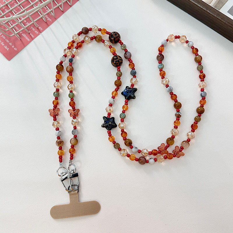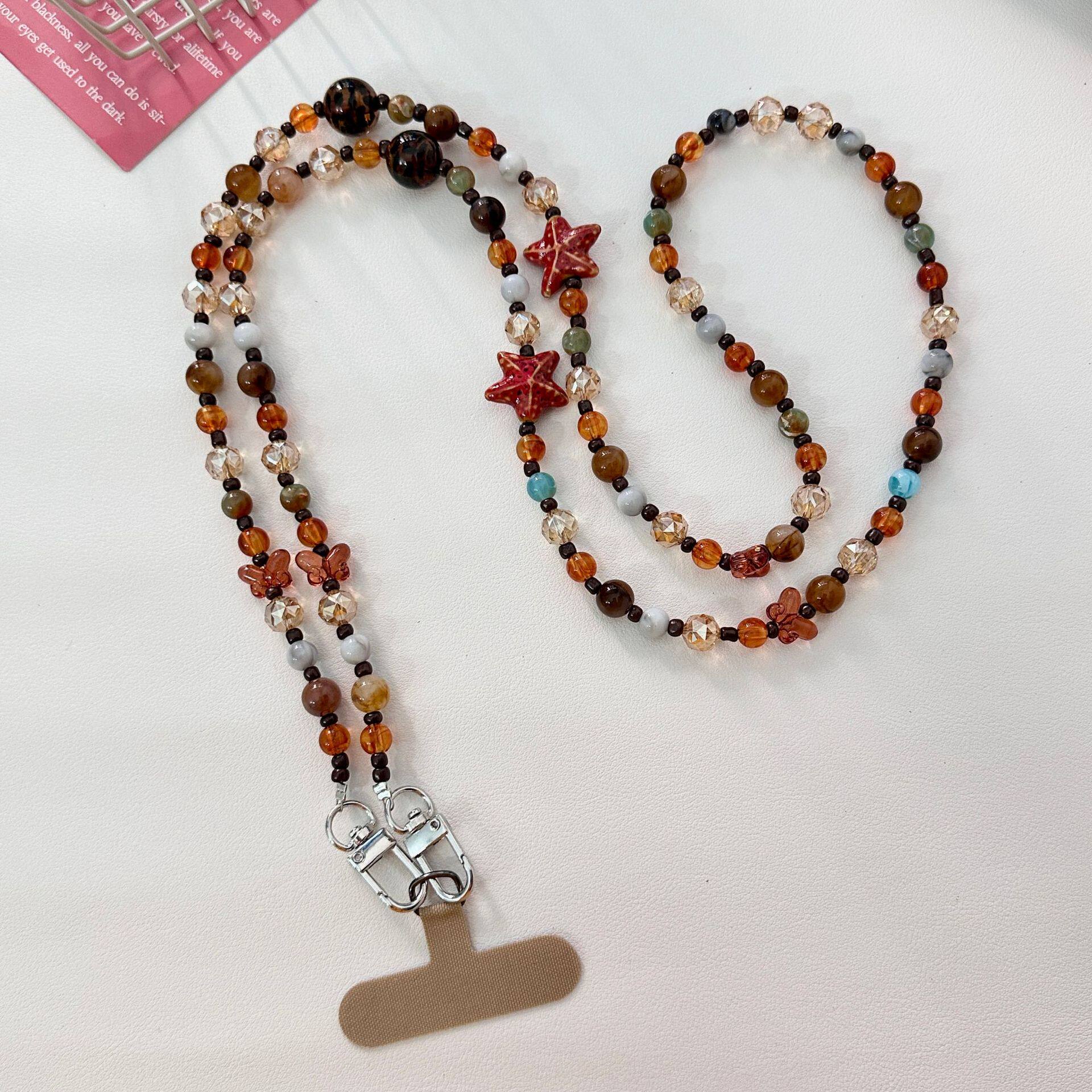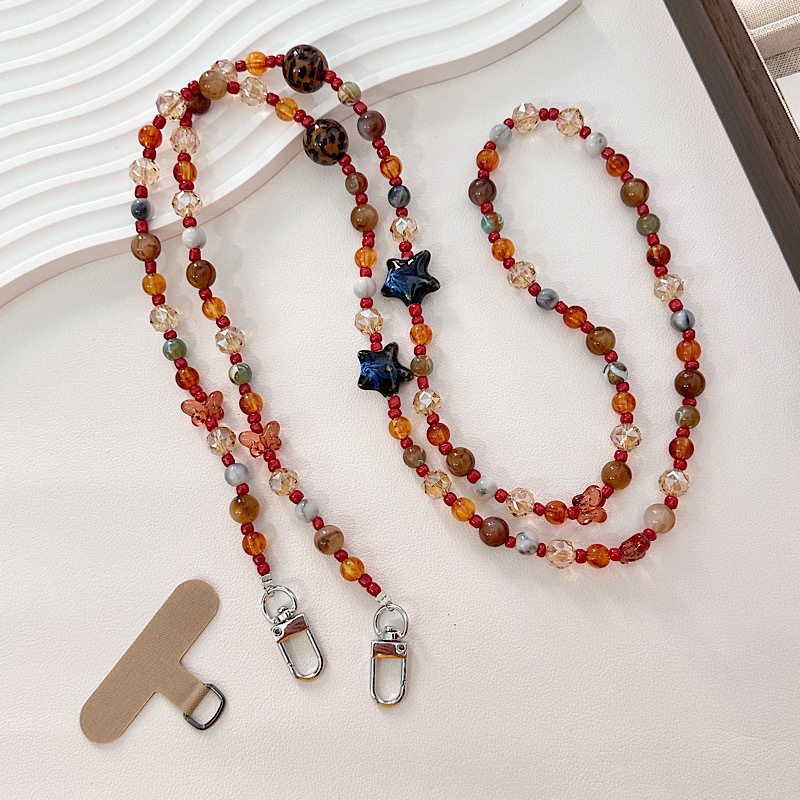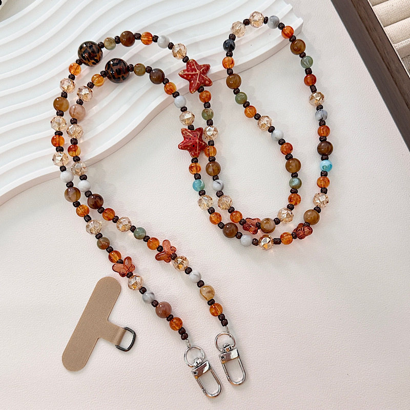 ins琥珀豹纹圆珠海星少女串珠挂链链条挂绳背带包包长款通用