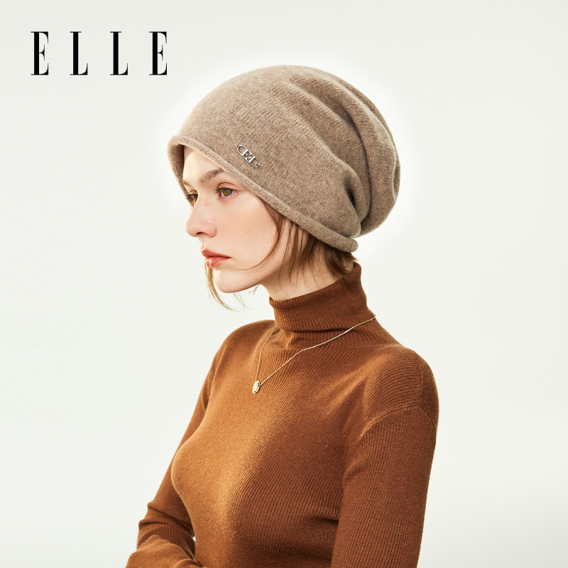 ELLE羊毛针织毛线堆堆帽子冷帽/提花围巾围脖/手套女士秋冬季保暖