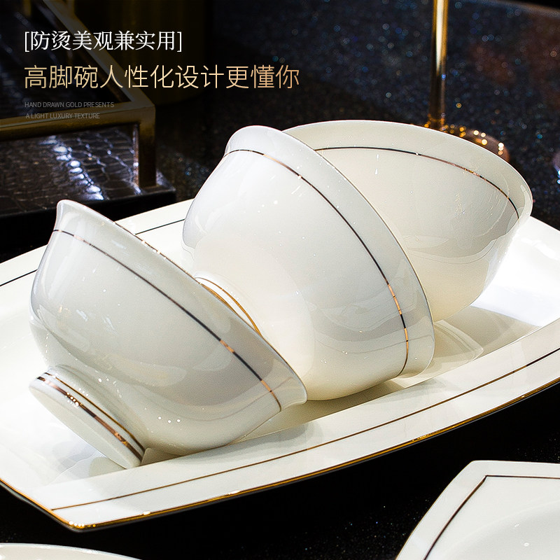 2025新款高颜值碗碟套装家用轻奢景德镇盘子筷骨瓷餐具套装碗乔迁