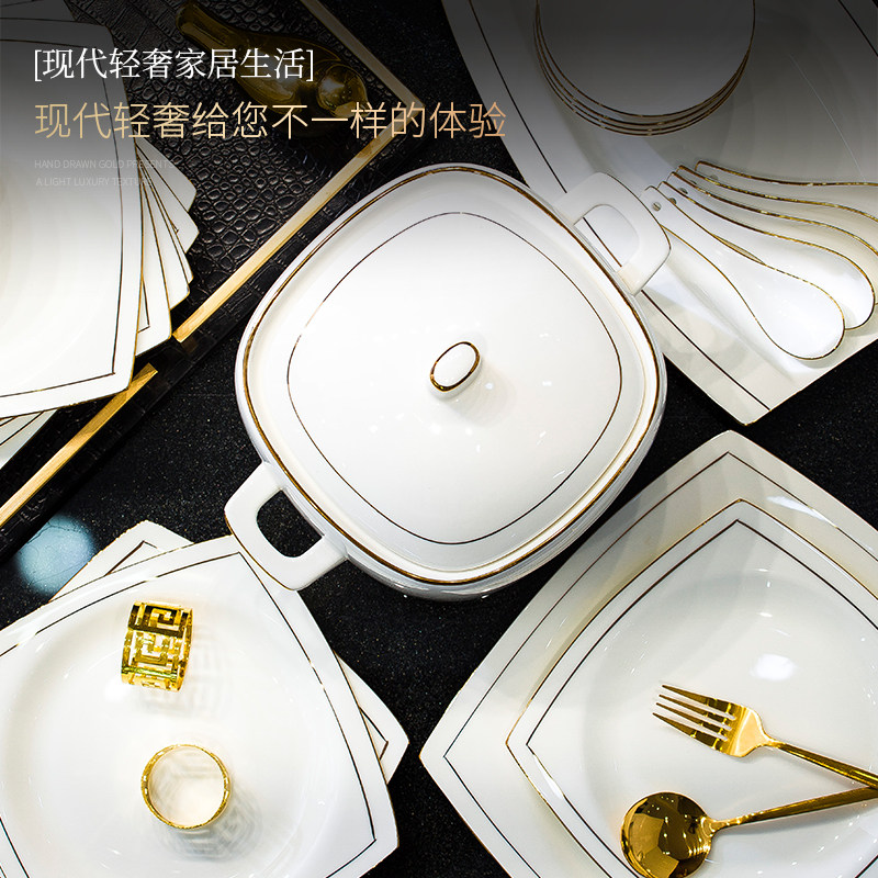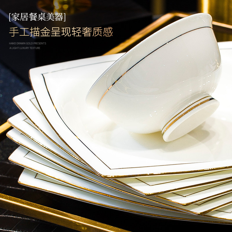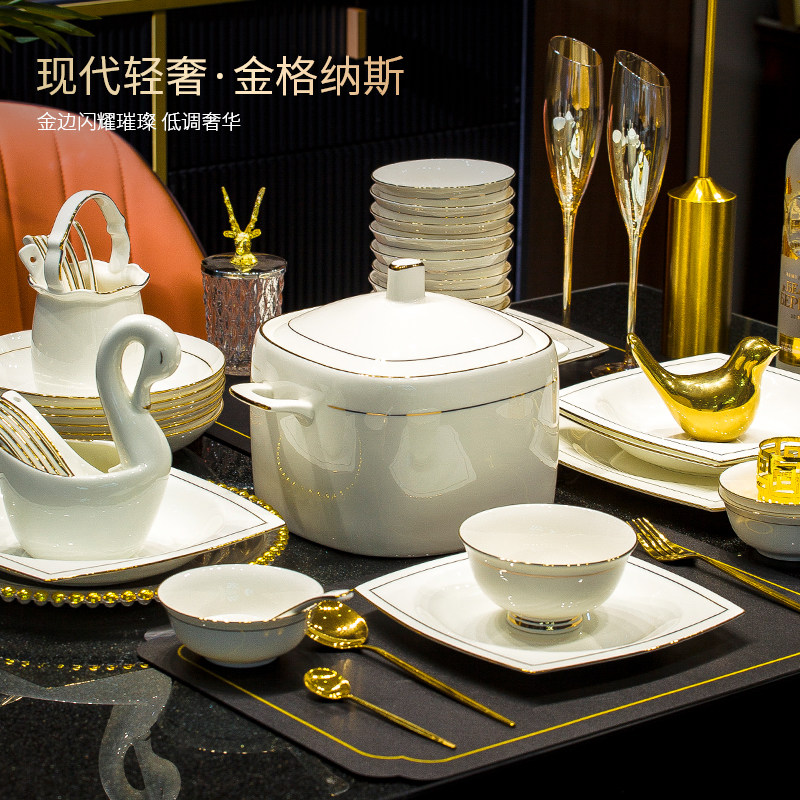 轻奢格调景德镇骨瓷餐具套装适用微波炉