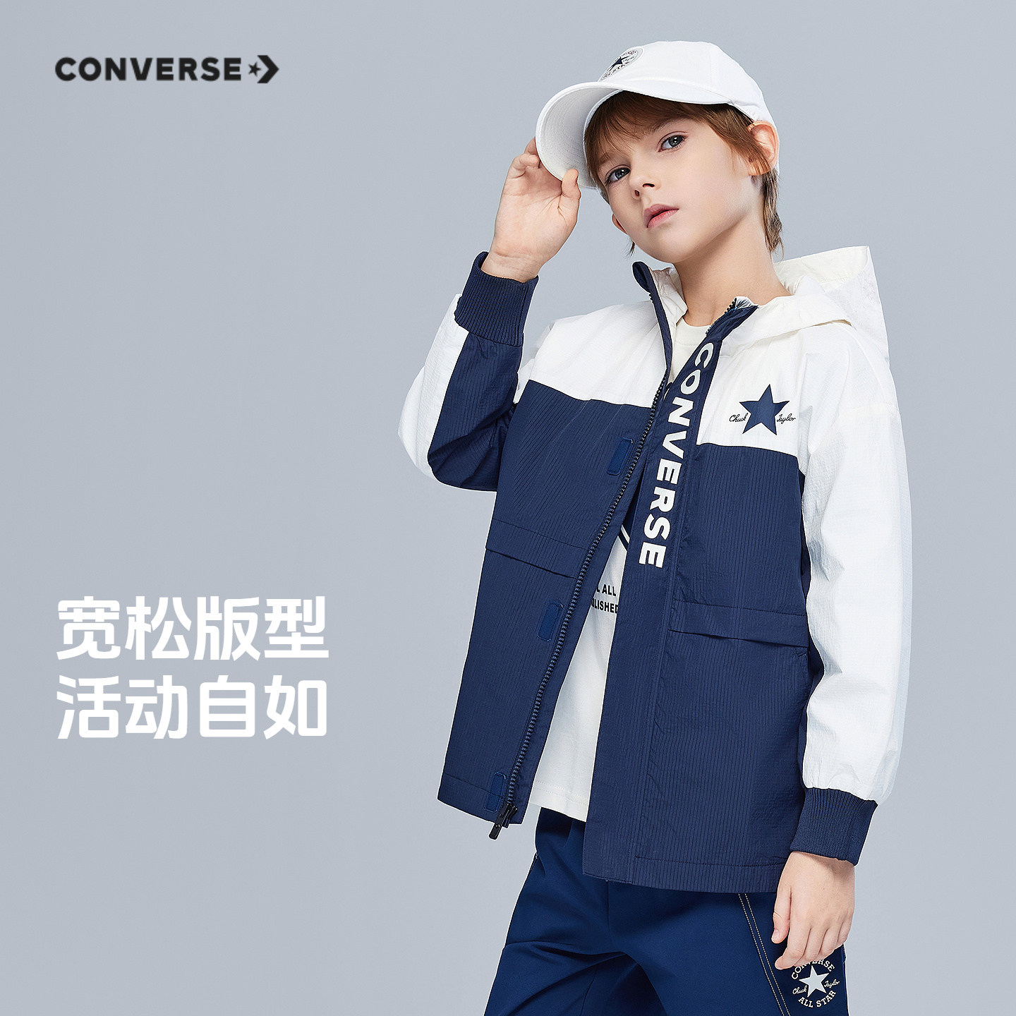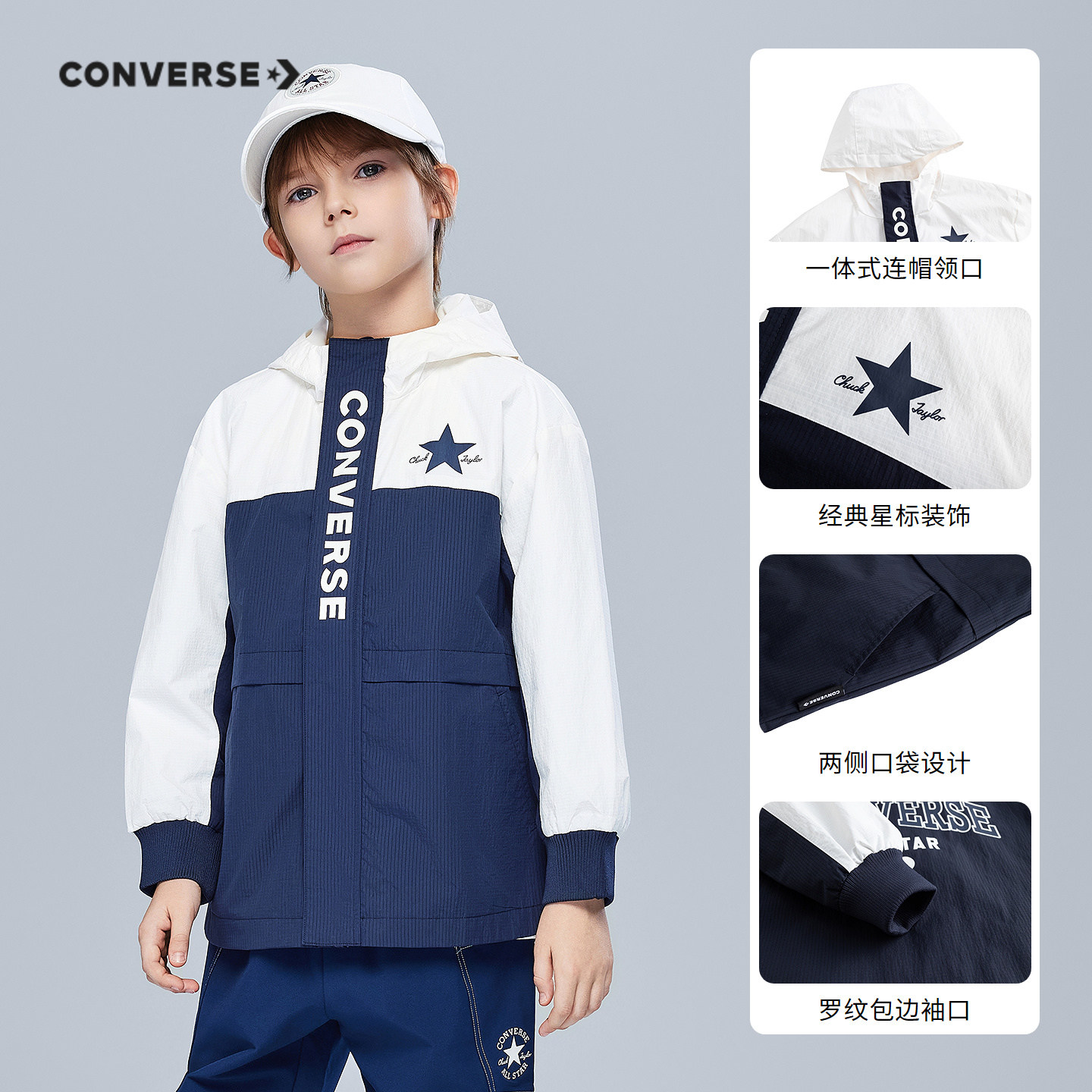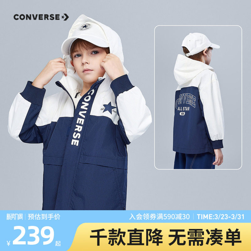 匡威童装男童风衣青少年春季中大童拼色休闲运动连帽外套洋气潮