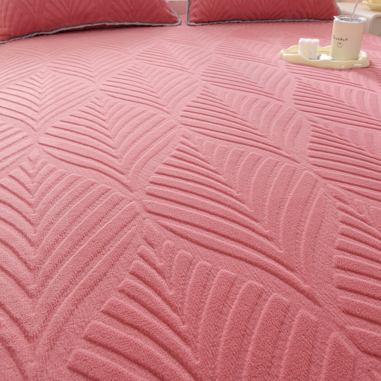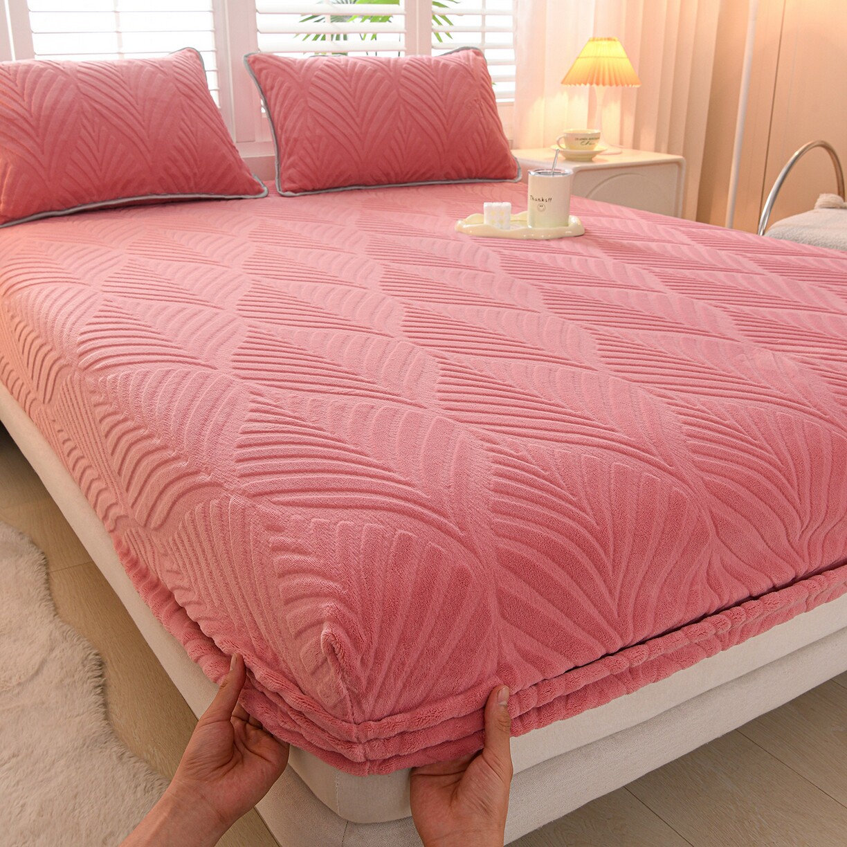 雕花加厚牛奶绒床笠三件套冬季珊瑚绒床罩床垫保护罩防滑加绒床套