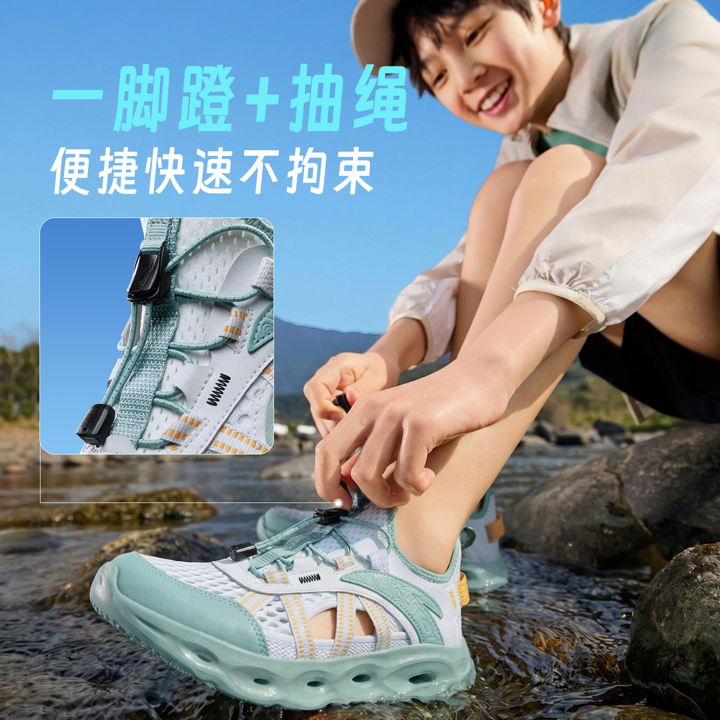 安踏儿童凉鞋框子鞋夏季新款男童透气户外溯溪鞋休闲沙滩鞋