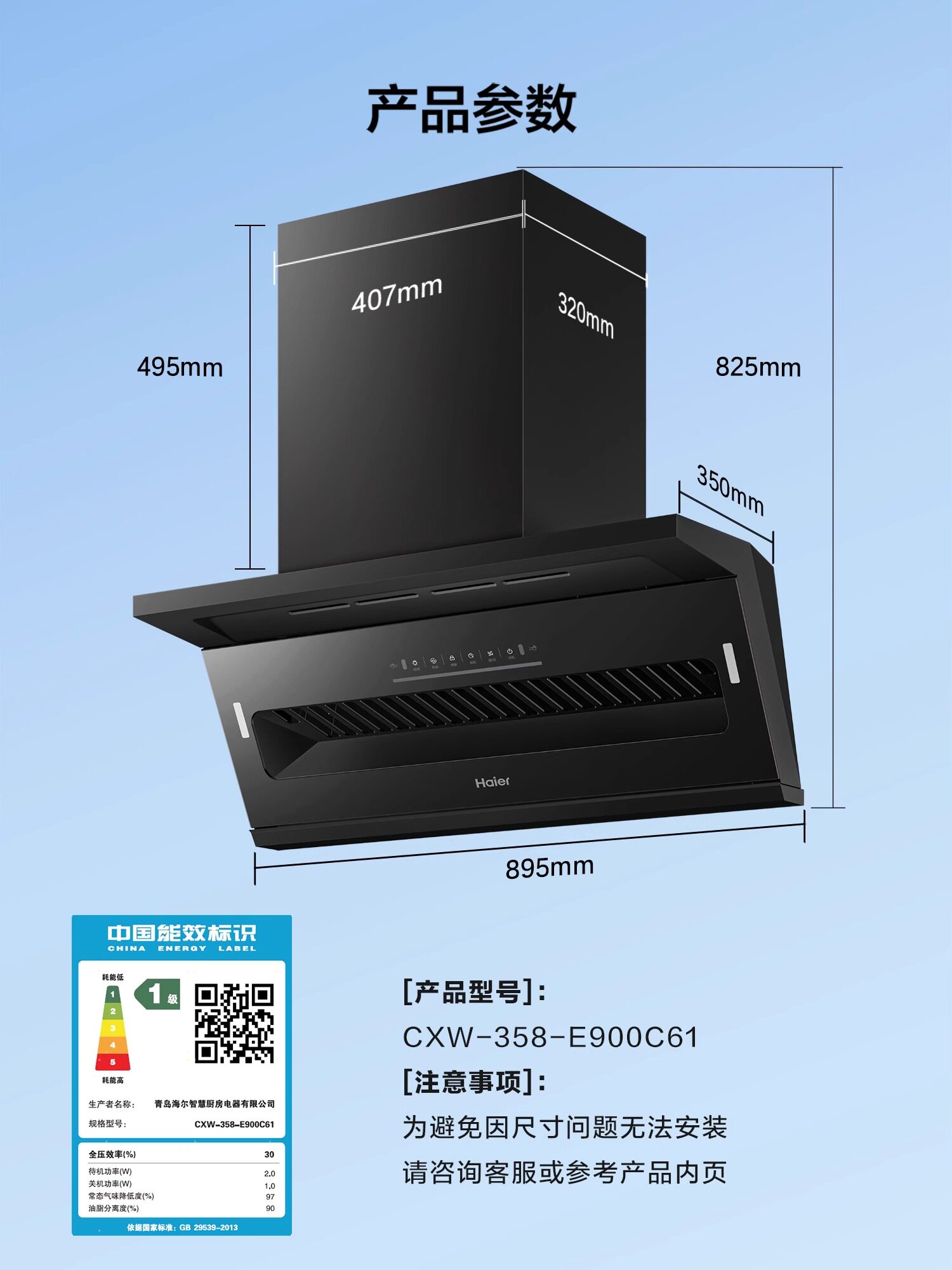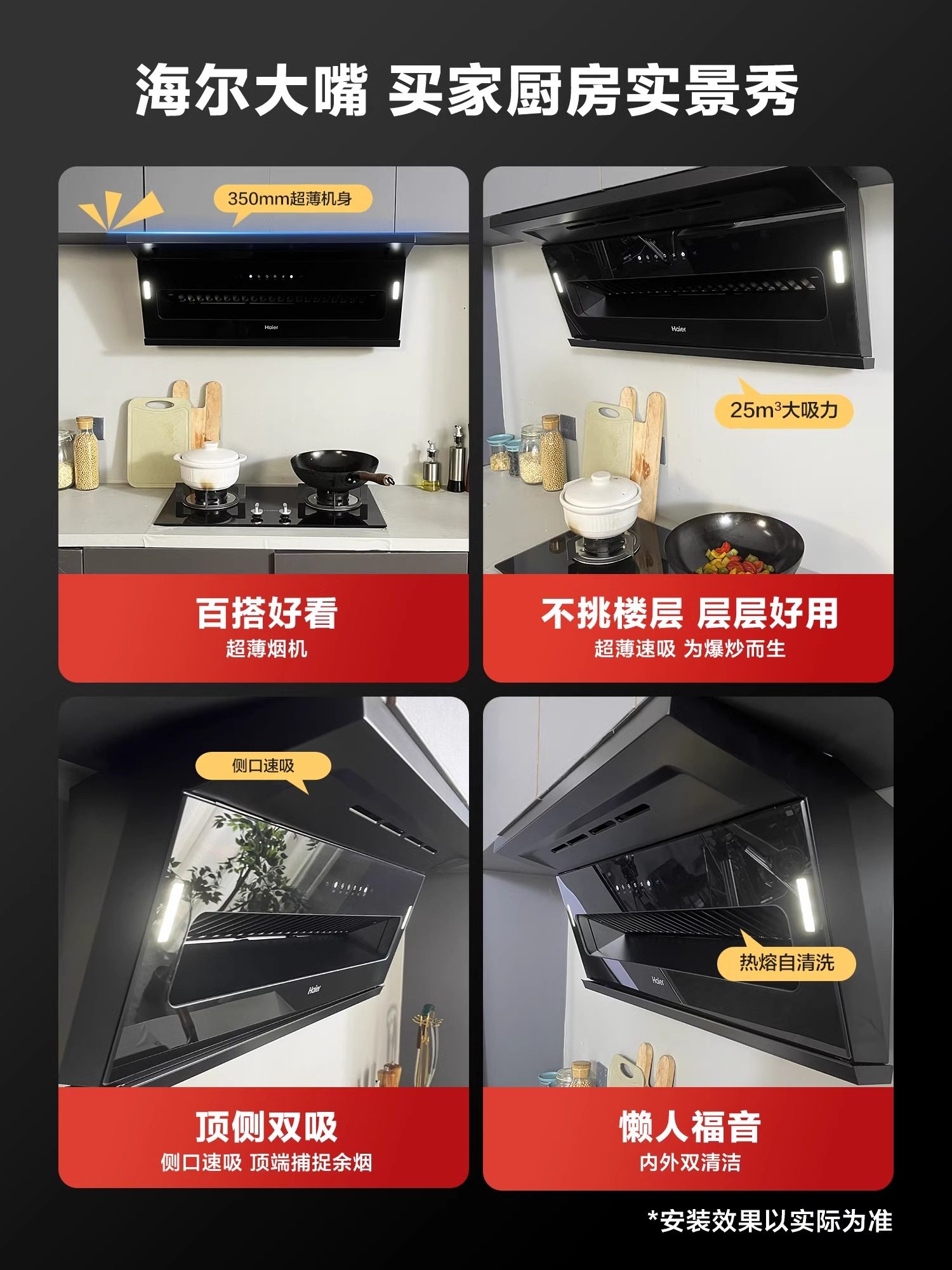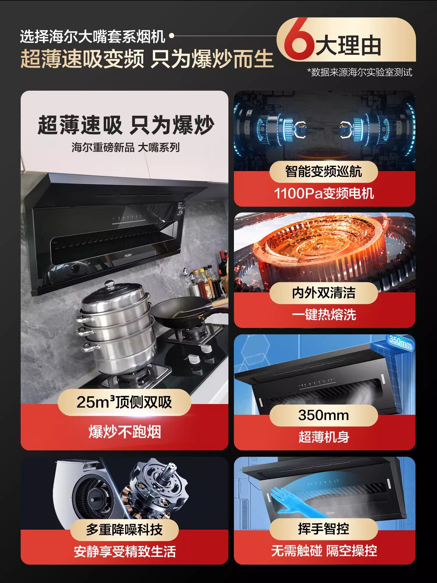 【超薄速吸】海尔C61Pro吸油烟机变频大吸力顶侧双吸自清洁抽油机