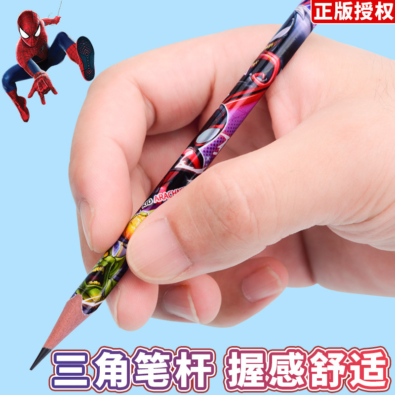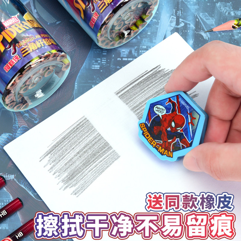 正版漫威蜘蛛侠铅笔小学生用一二三年级儿童卡通可爱文具HB铅笔橡皮30支幼儿园12年级高颜值学习用品奖励礼品