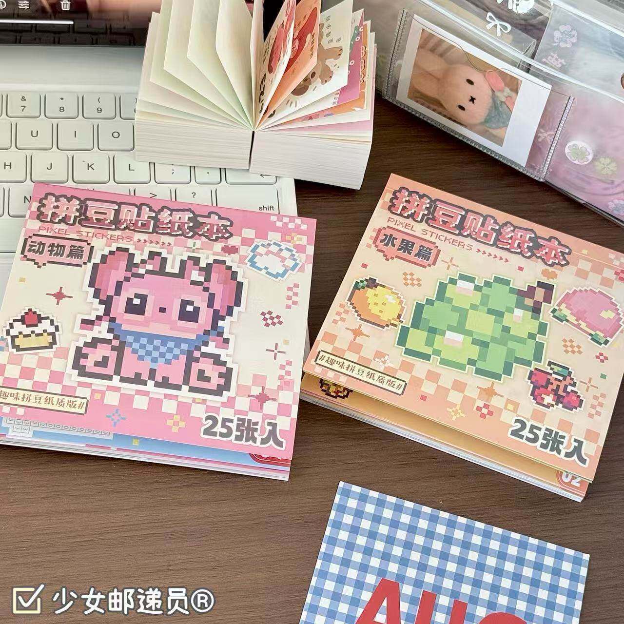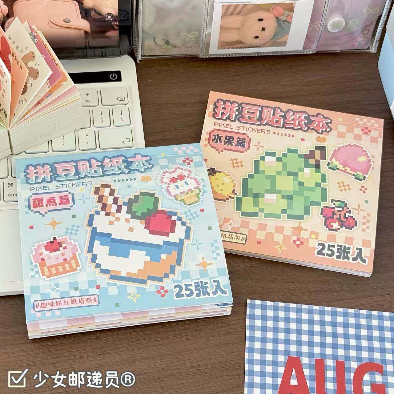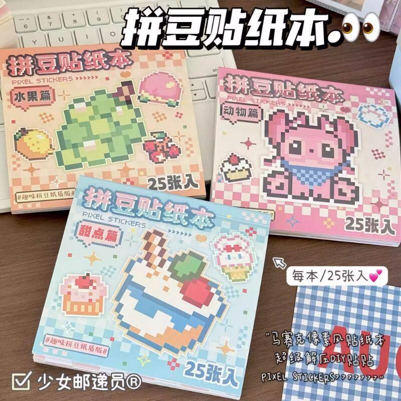 ins高颜值拼豆贴纸本马赛克像素风2D贴画diy手账素材贴解压
