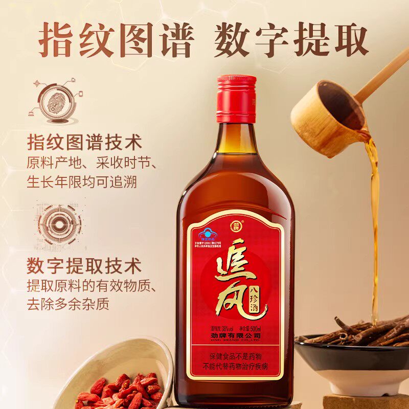 劲牌 中国劲酒500ml追风八珍酒38度光瓶装便携自饮聚会养保健酒生