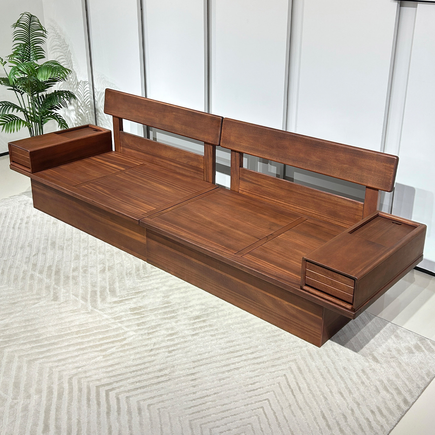 新中式乌金木实木沙发组合大小户型客厅冬夏两用别墅现代储物家具
