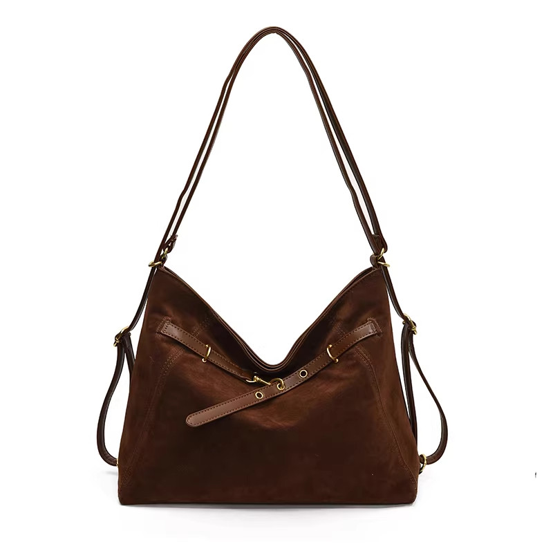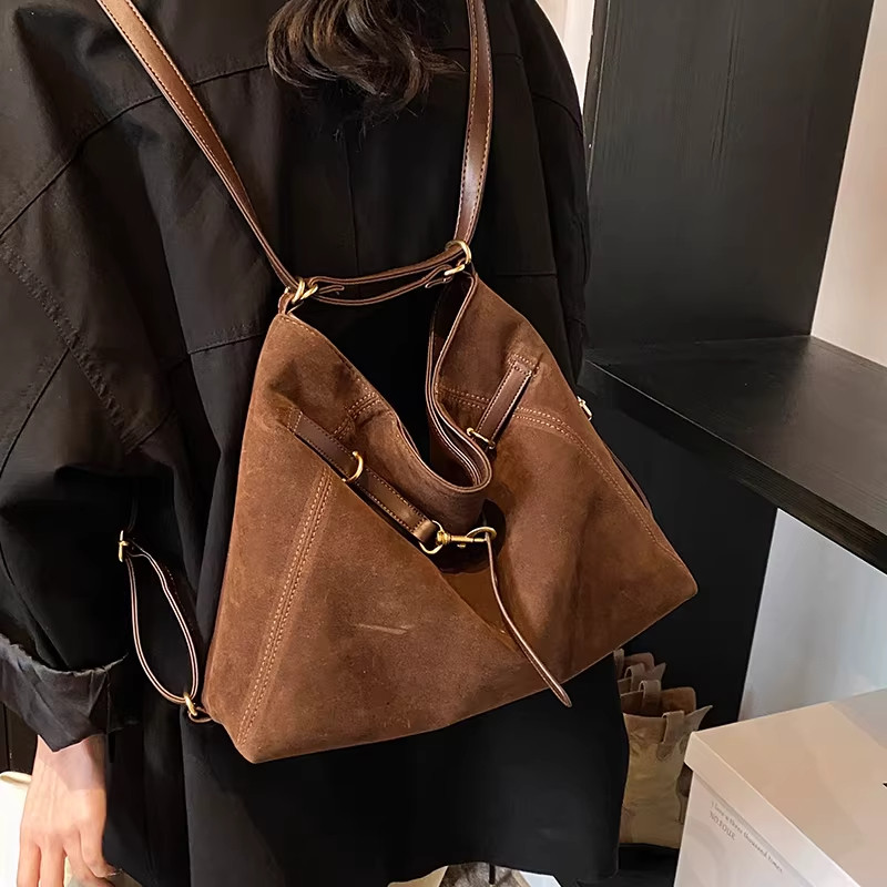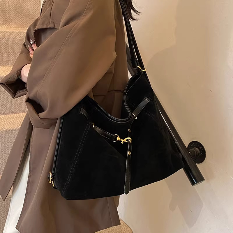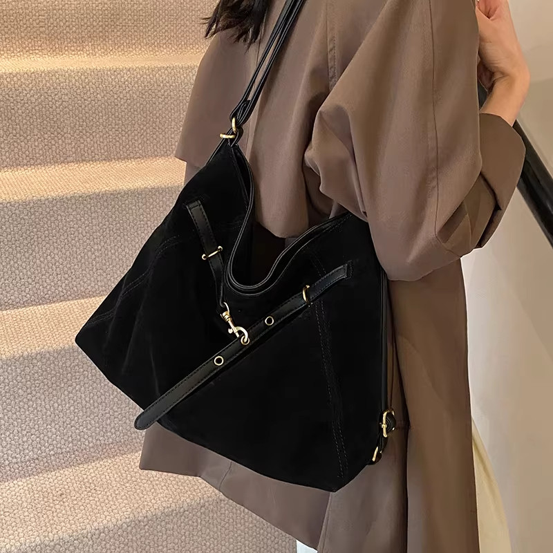 麂皮绒包包女大容量2026新款单肩斜挎通勤托特包双肩背包手提黑色