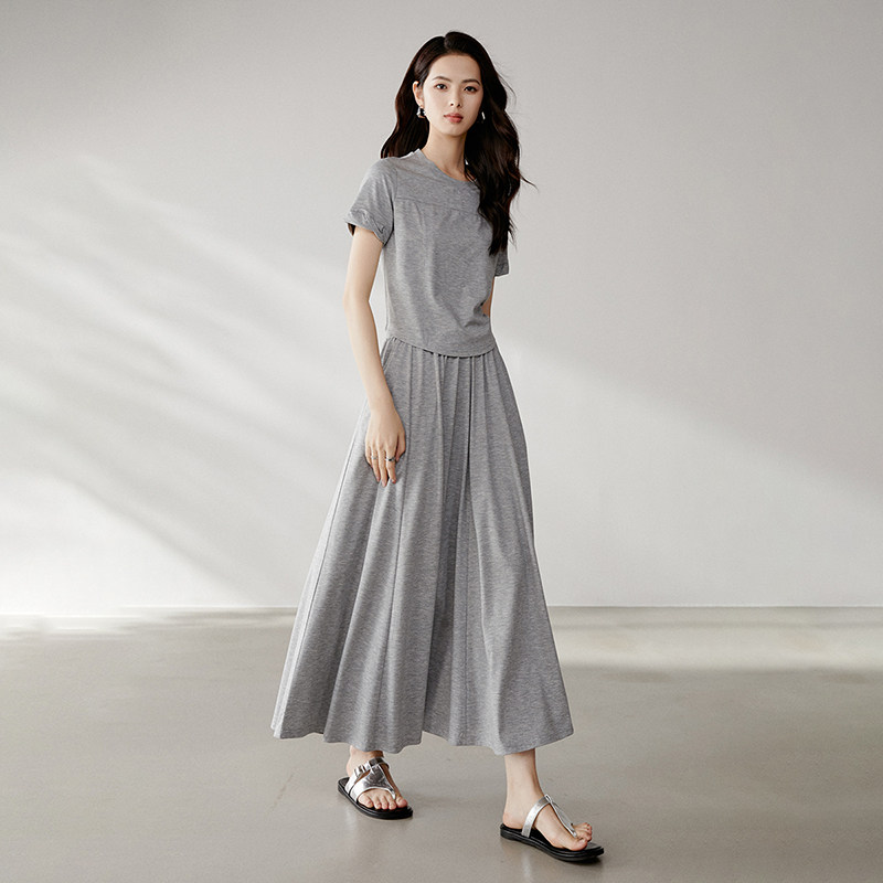 晚白2026年春新款简约休闲时尚套装裙亲肤柔软舒适日常通勤两件套