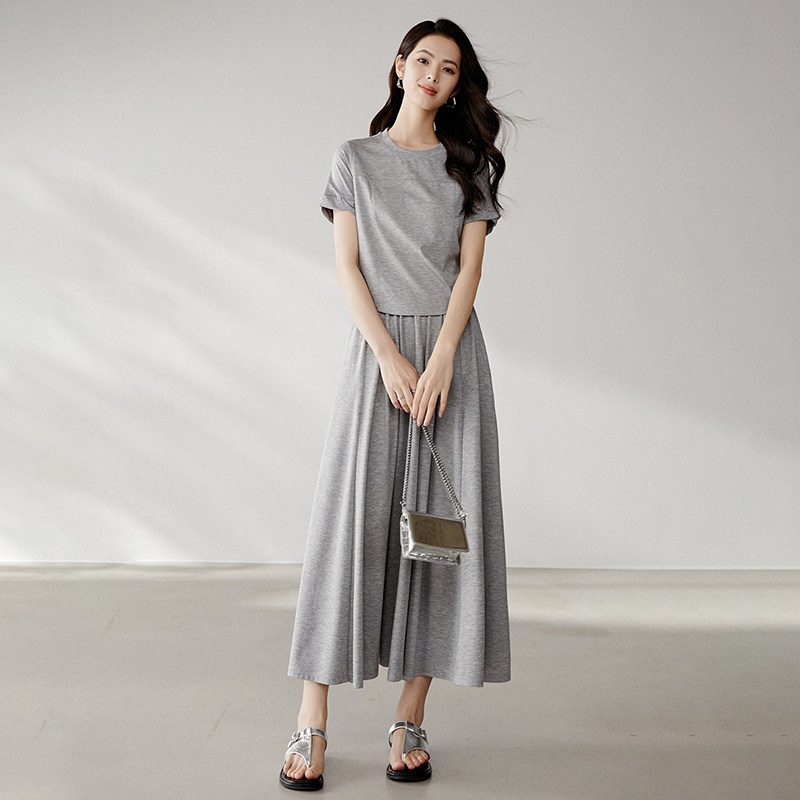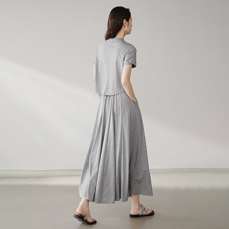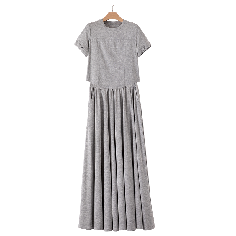 短袖莫代尔长裙大摆显瘦A字超长款打底宽松夏休闲度假连衣裙女装