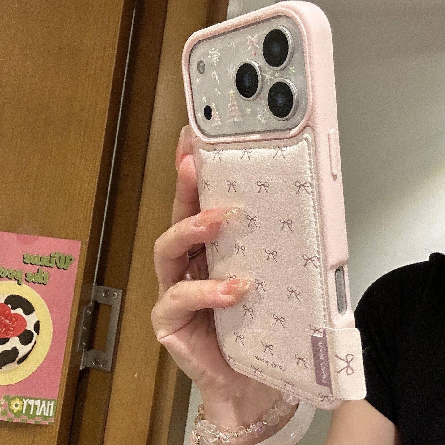 半糖壳野ins韩系甜美粉色鼓包皮质苹果17pormax手机壳iPhone16pro软壳15防摔14pro新款13防摔17保护套