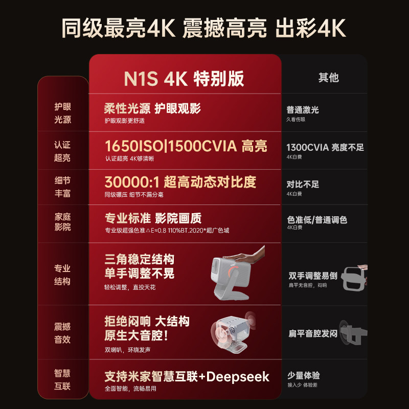 【年货节】JMGO/坚果投影 N1S 4K特别版纯三色激光4K投影仪家用超高清可连手机投影机办公用会议政府补贴 268