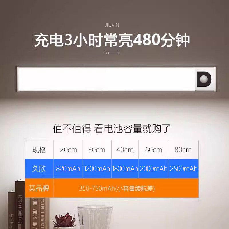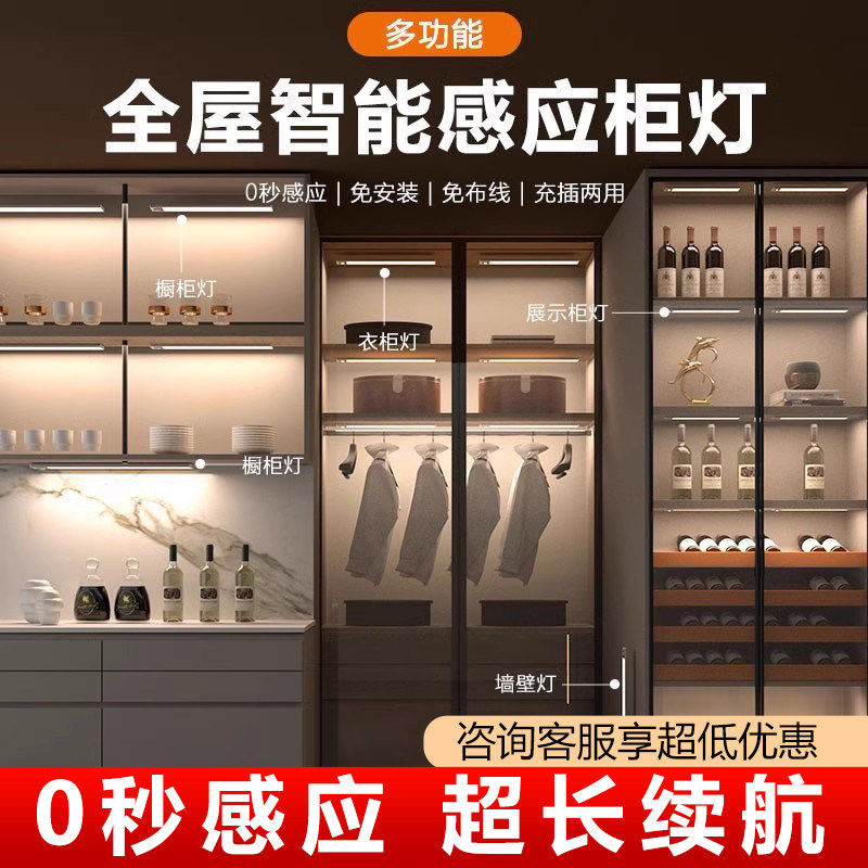 led充电橱柜灯无线磁吸免接线衣柜酒柜鞋柜超薄家用人体感应灯带