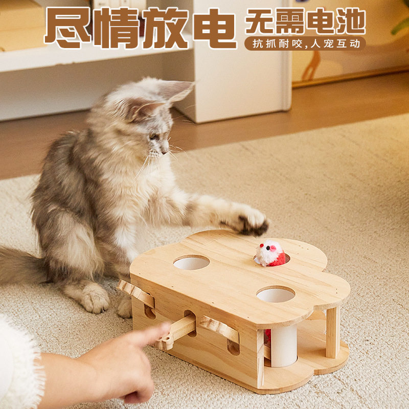 猫咪打地鼠猫玩具老鼠逗猫自嗨解闷用品实木宠物小猫消耗体力神器