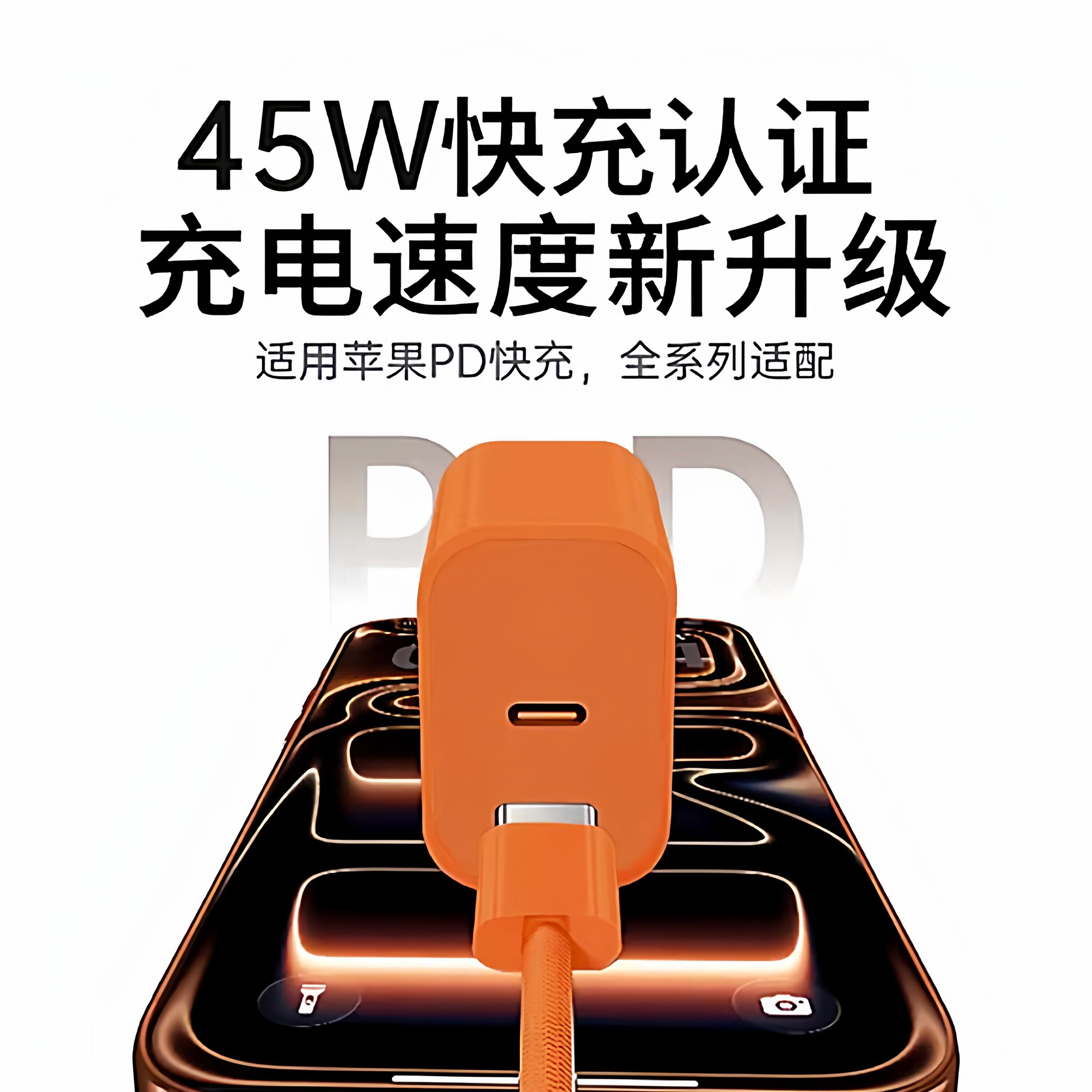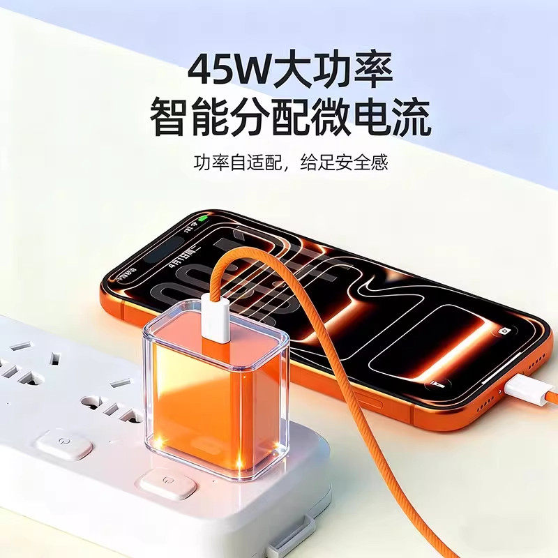 适用苹果17ProMax充电器45W瓦PD快充iPhone15/16/17Pro手机充电插头苹果17air16plus充电器橙色加长2米线套装