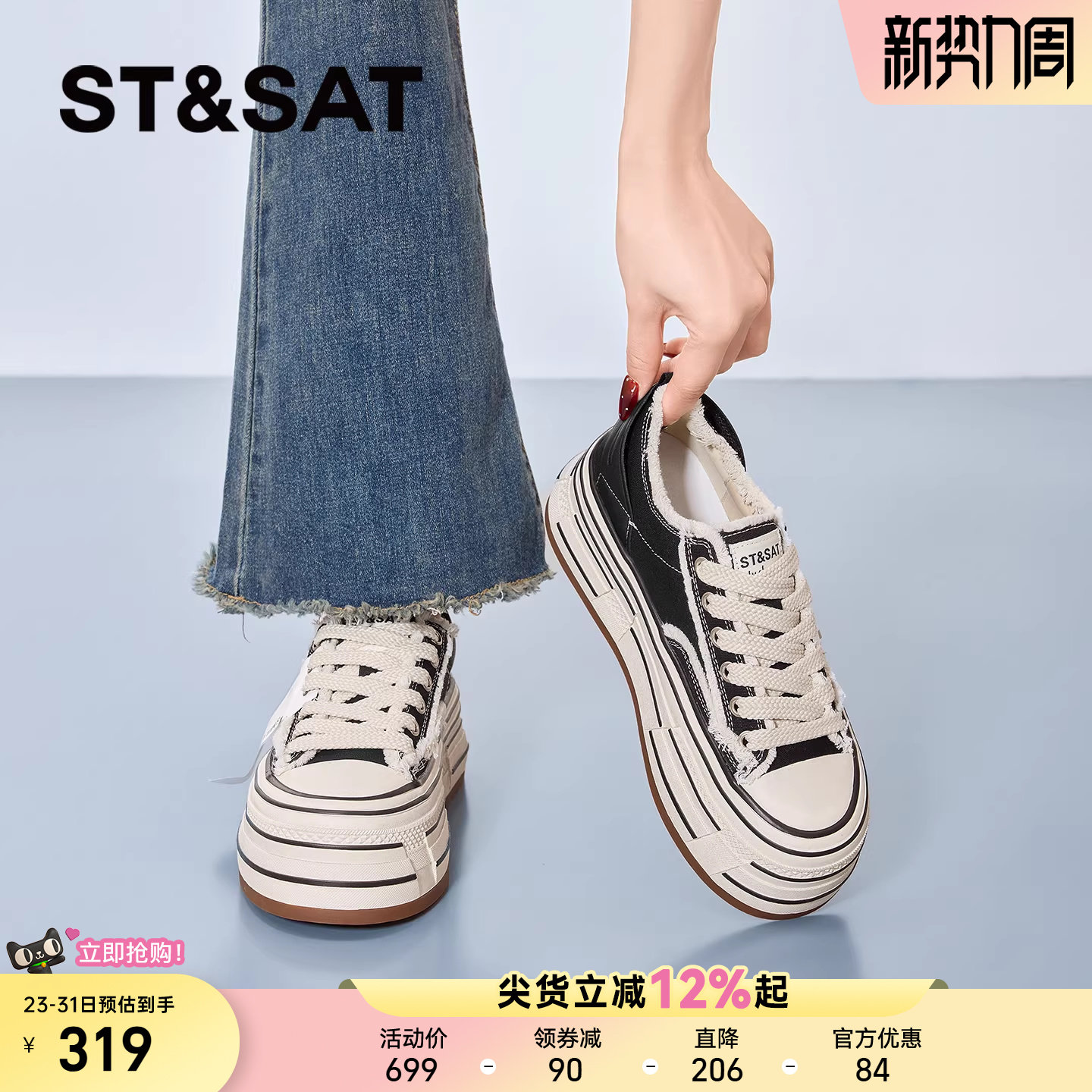 星期六休闲板鞋女2026春季新款斯德哥尔乞丐鞋厚底百搭厚底帆布鞋