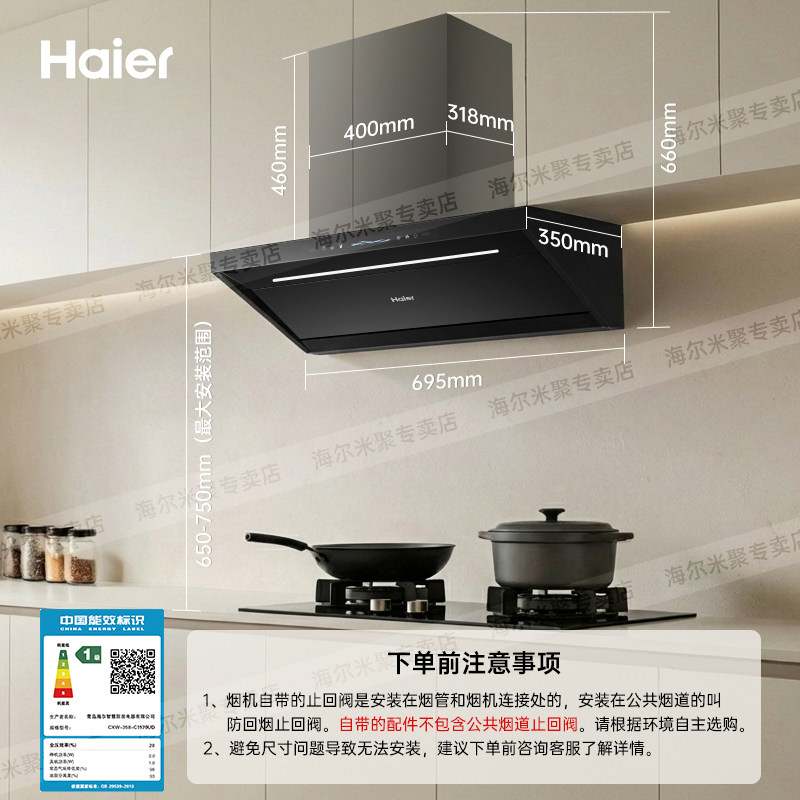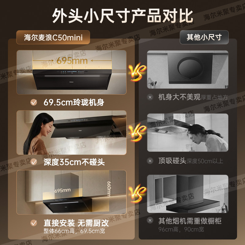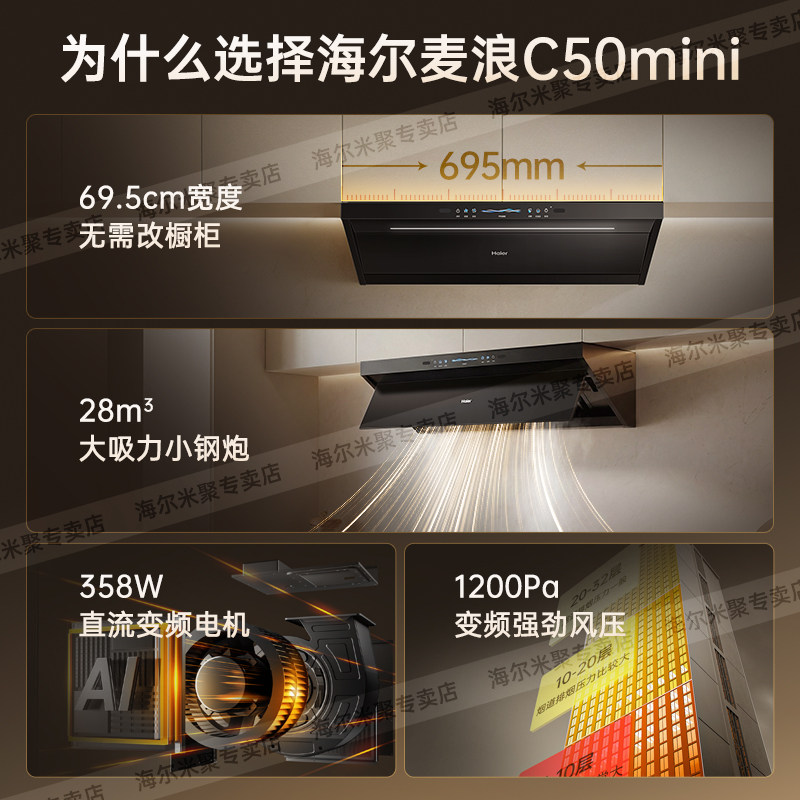 海尔麦浪C1570顶吸侧吸家用自清洗大吸力小尺寸小户型 吸抽油烟机