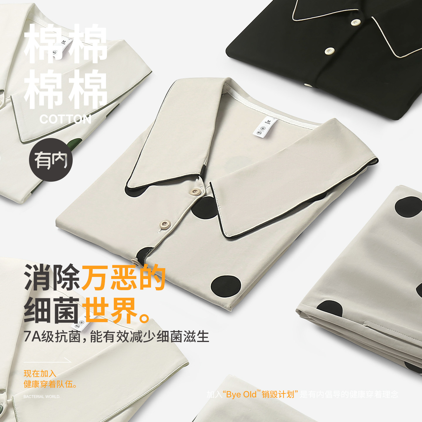 有内睡衣女纯棉抗菌防螨长袖长裤秋冬宽松家居服套装波点2025新款