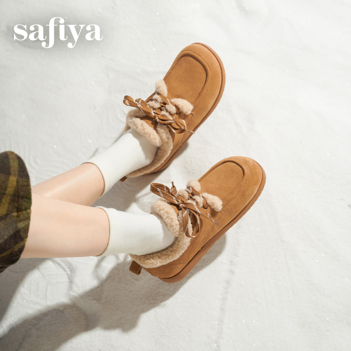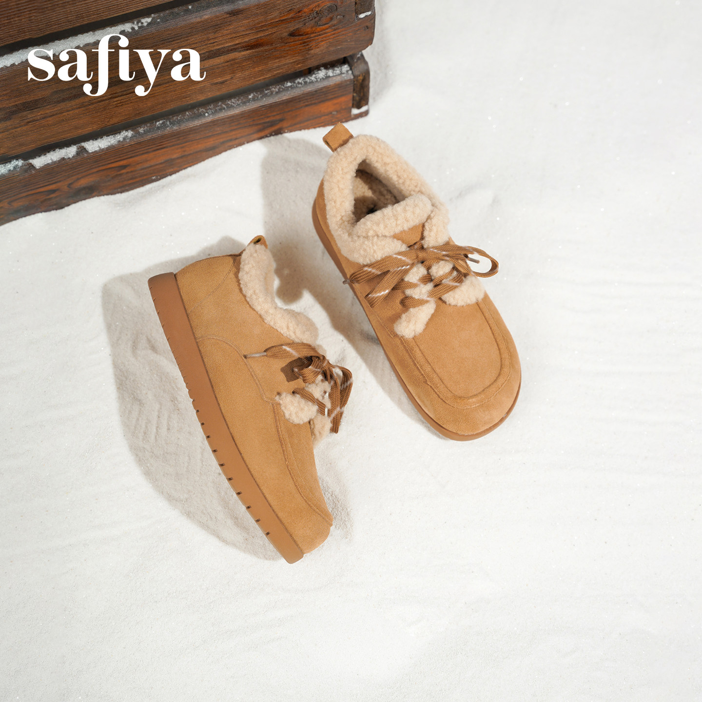 Safiya/索菲娅2025冬季新款百搭外穿休闲系带加绒厚底雪地靴女