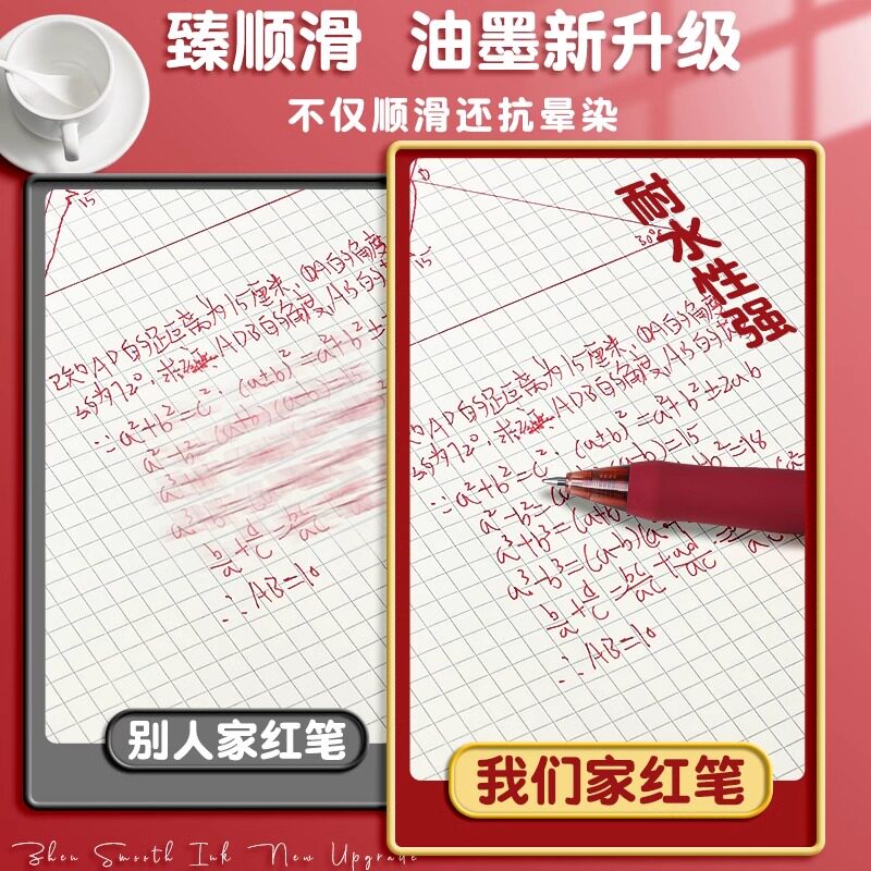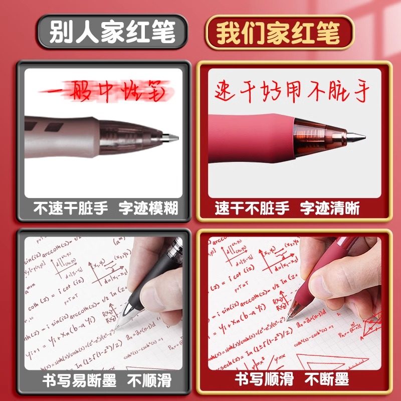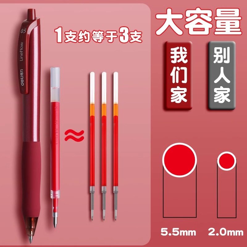 得力红笔学生专用中性笔教师老师批改作业按动笔标记0.5mm按动式红色高颜值水笔签字笔速干顺滑圆珠笔红笔芯