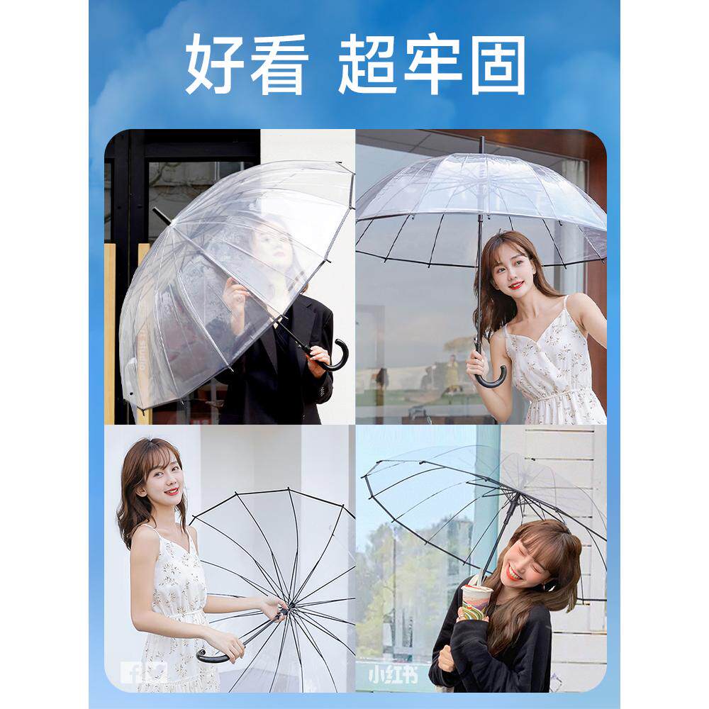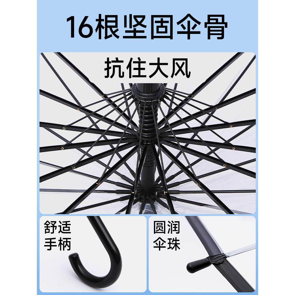 长柄透明雨伞双人男女大号伞16骨加固结实抗风白晴雨两用雨伞1754