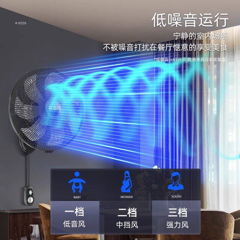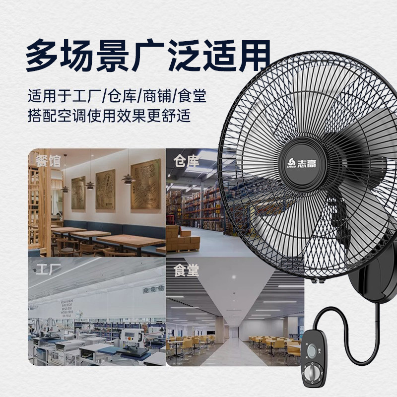 志高2026壁扇挂壁式电风扇大风力轻音家用厨房商用摇头挂墙机械式