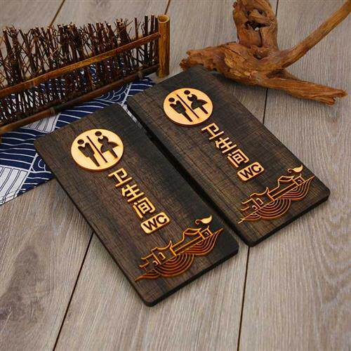 现货速发a原木雕刻仿古公共男化妆室牌子标牌指示牌创意中式立体
