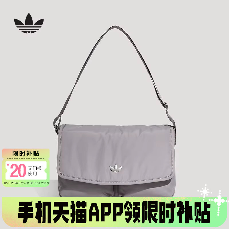 adidas阿迪达斯三叶草可调节肩带邮差包2026春多仓斜挎包 KT7418