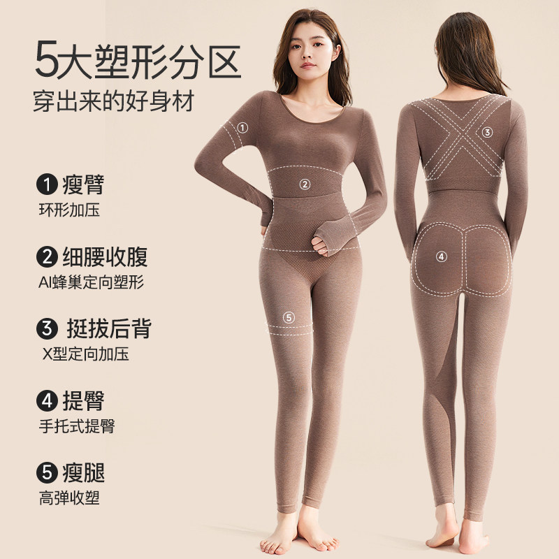 羊毛修身美体塑身秋衣秋裤套装大码紧身保暖内衣女款贴身打底肤色