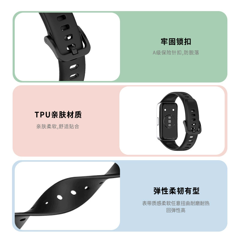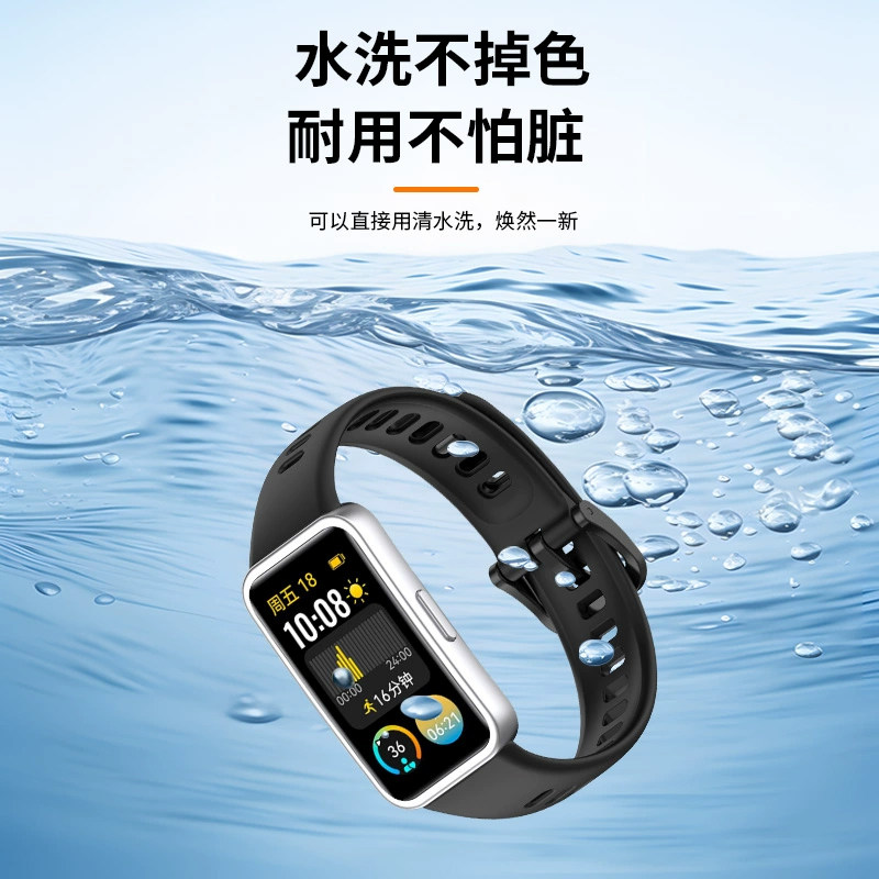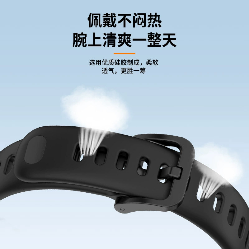 钉扣款适用华为手环10/9腕带8nfc版手表10/9表带同款智能运动十代液态硅胶男女款band10替换带蓝色金属磁吸