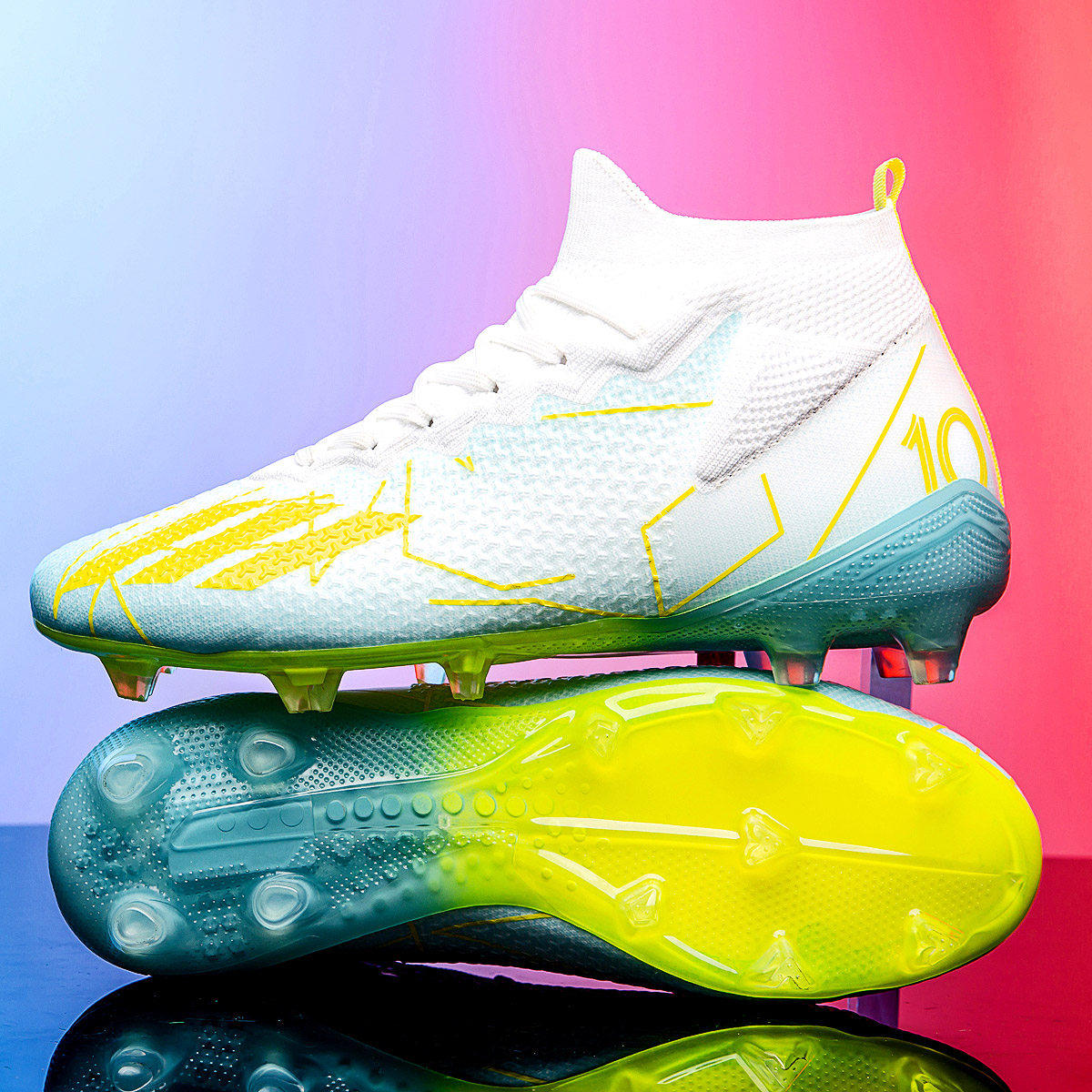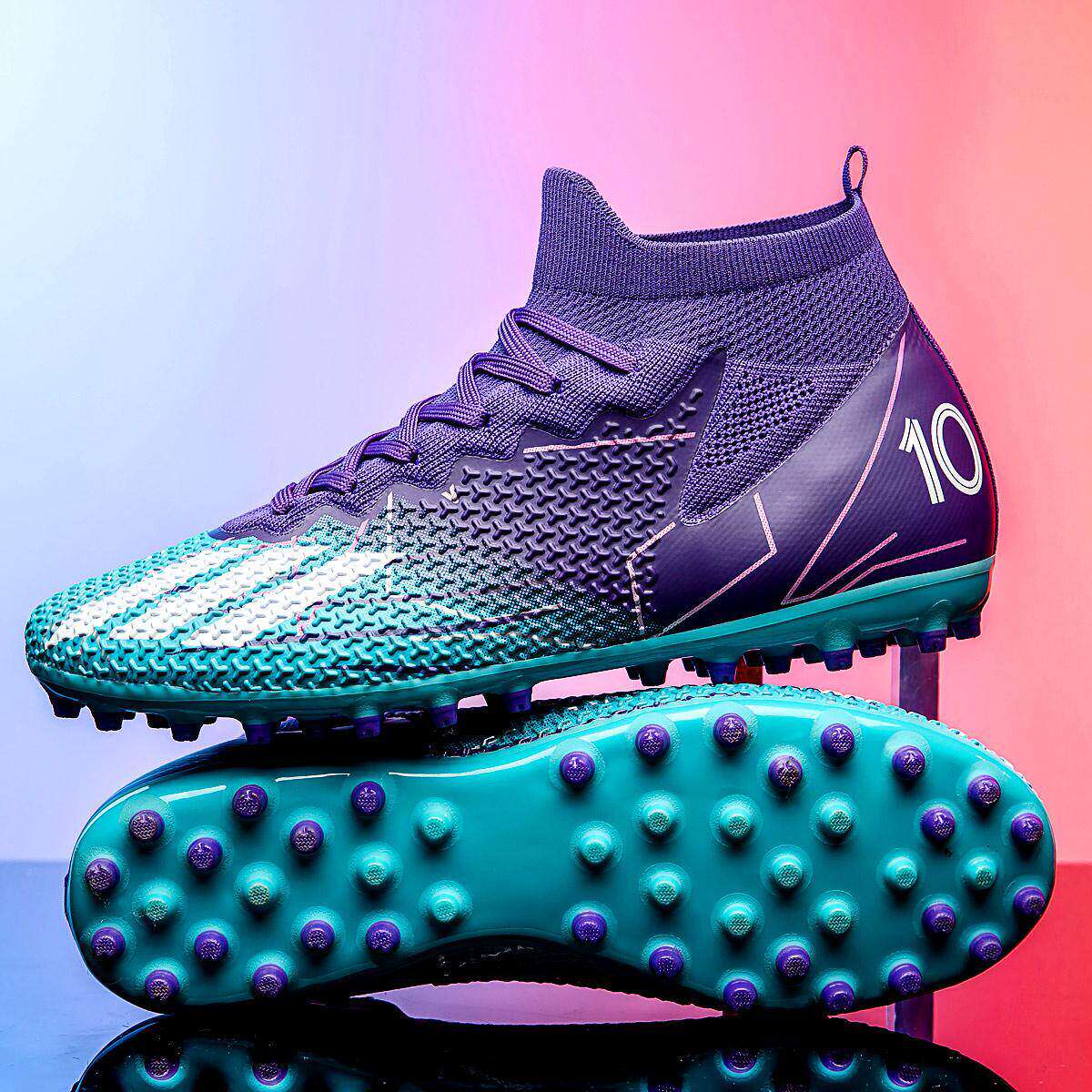 梅西短钉足球鞋高帮刺客中小学生长钉AG碎钉TF男童儿童透气训练鞋