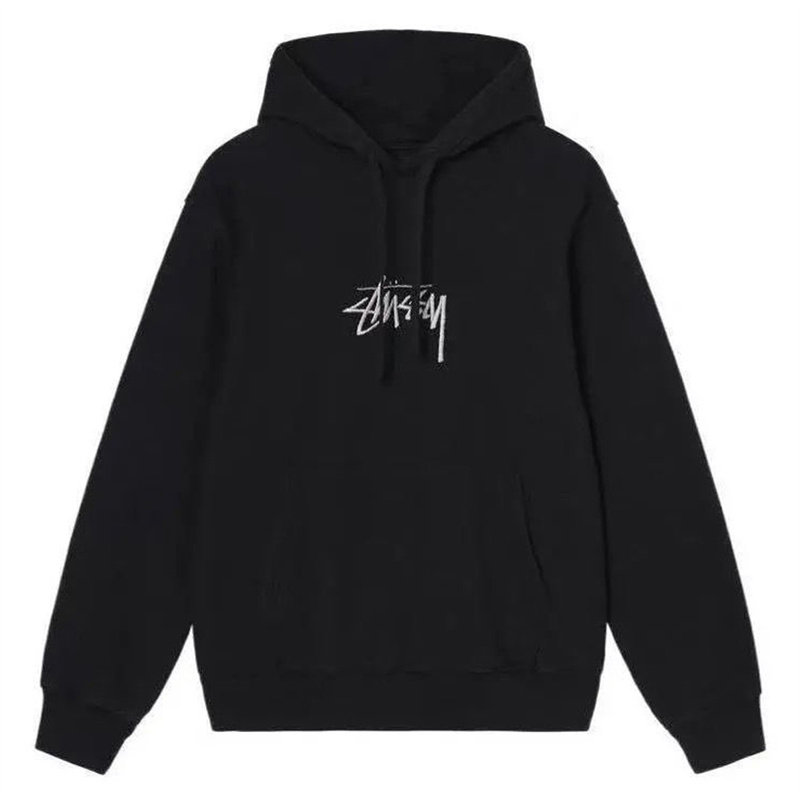 潮牌斯图西Stu连帽卫衣前面帽子刺绣重磅高版本秋冬加绒亲子黑色