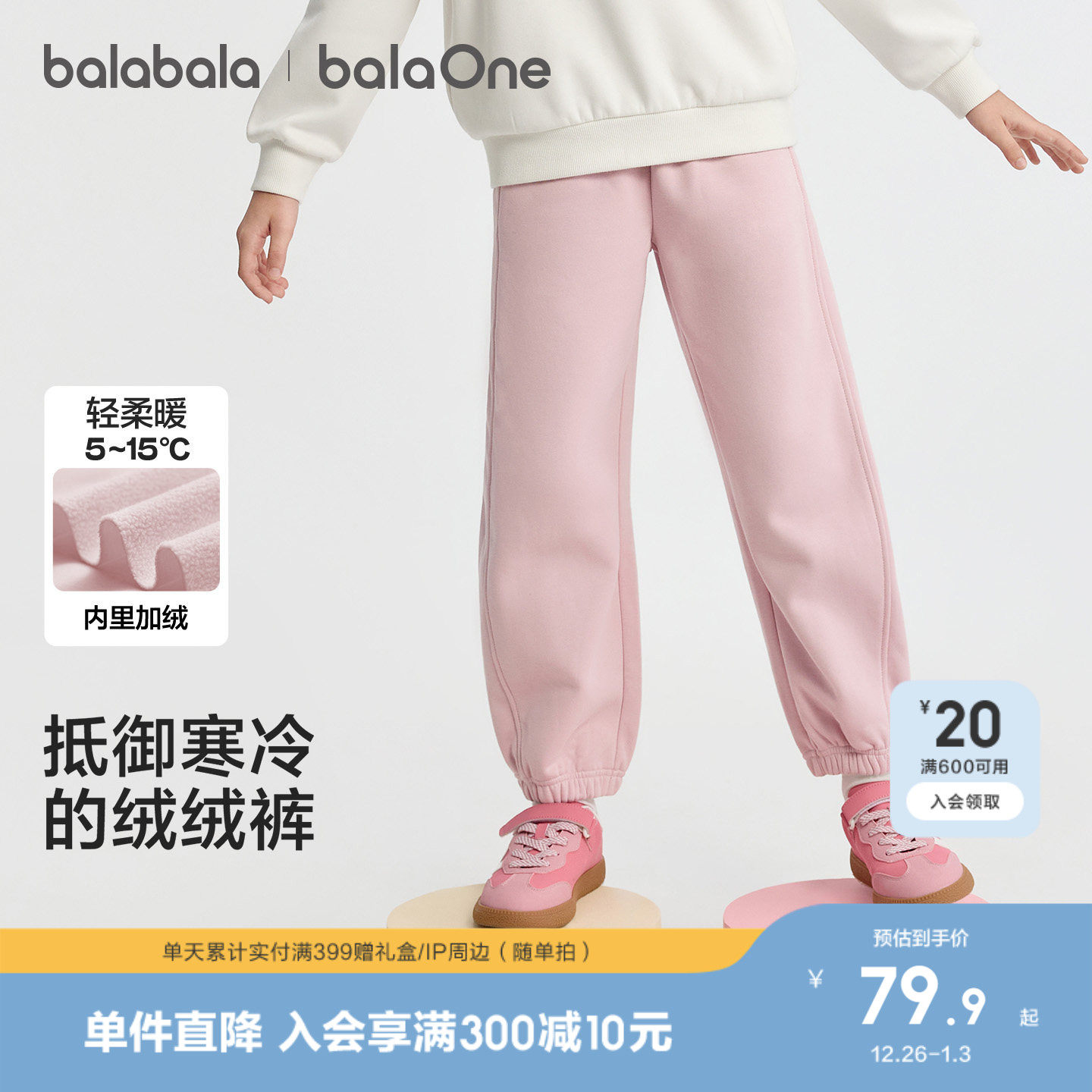 巴拉巴拉童装儿童加绒裤子女童运动长裤2025冬装新款一体绒保暖潮